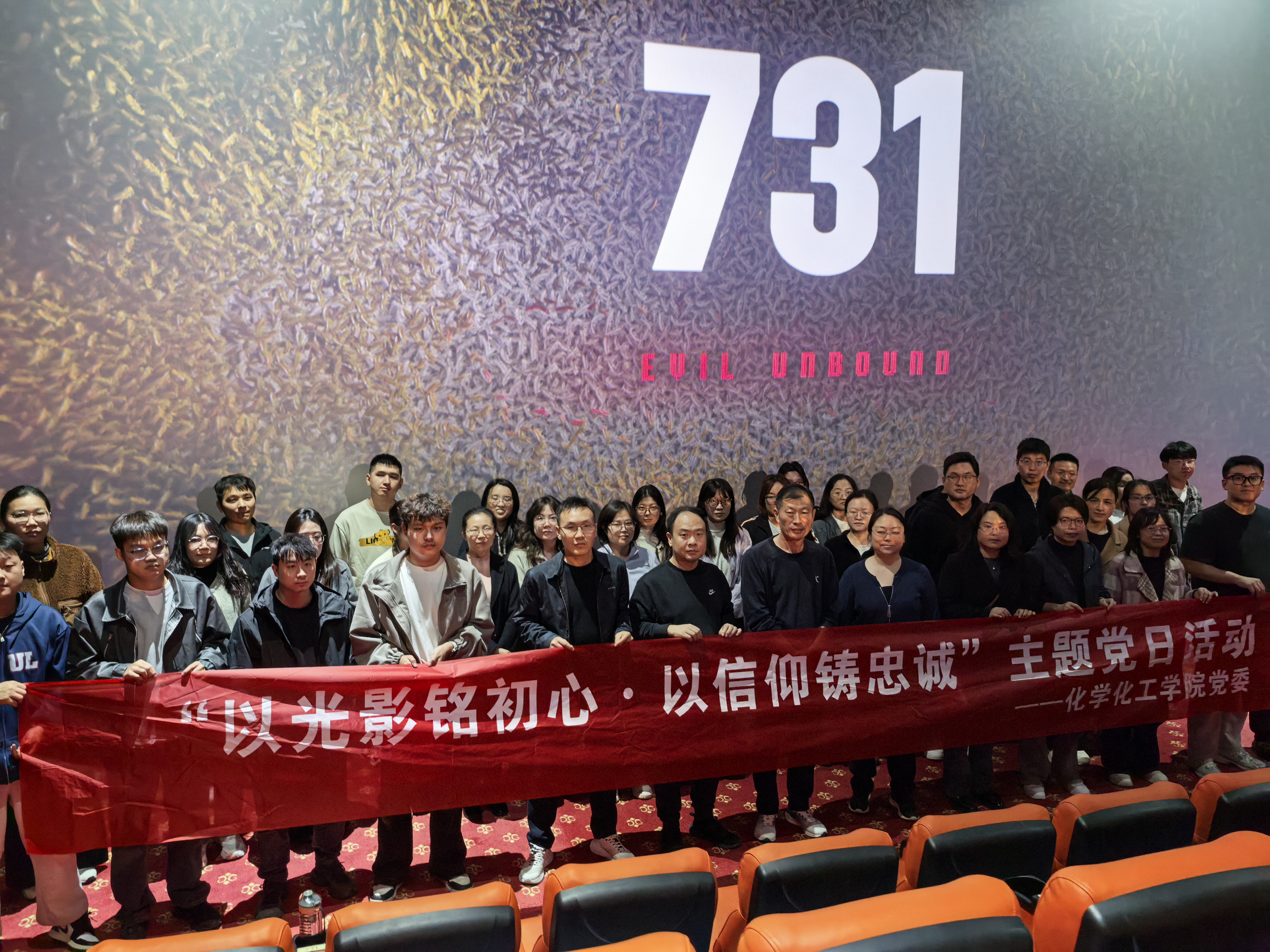 为深入学习贯彻习近平新时代中国特色社会主义思想,赓续红色血脉,厚植爱国主义情怀,10月10日下午,化学化工学院党委组织开展“以光影铭初心·以信仰铸忠诚”主题党日活动。全体教师党员及15名学生党员参加此次观影学习。