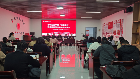 11月28日,化学化工学院召开“以案促改”师德师风警示教育专题会议,聚焦近期江苏科技大学发生的学术不端事件,通过以案为鉴、以案促改,进一步强化教师队伍的师德师风建设意识。学院领导班子和全体教职工参会。