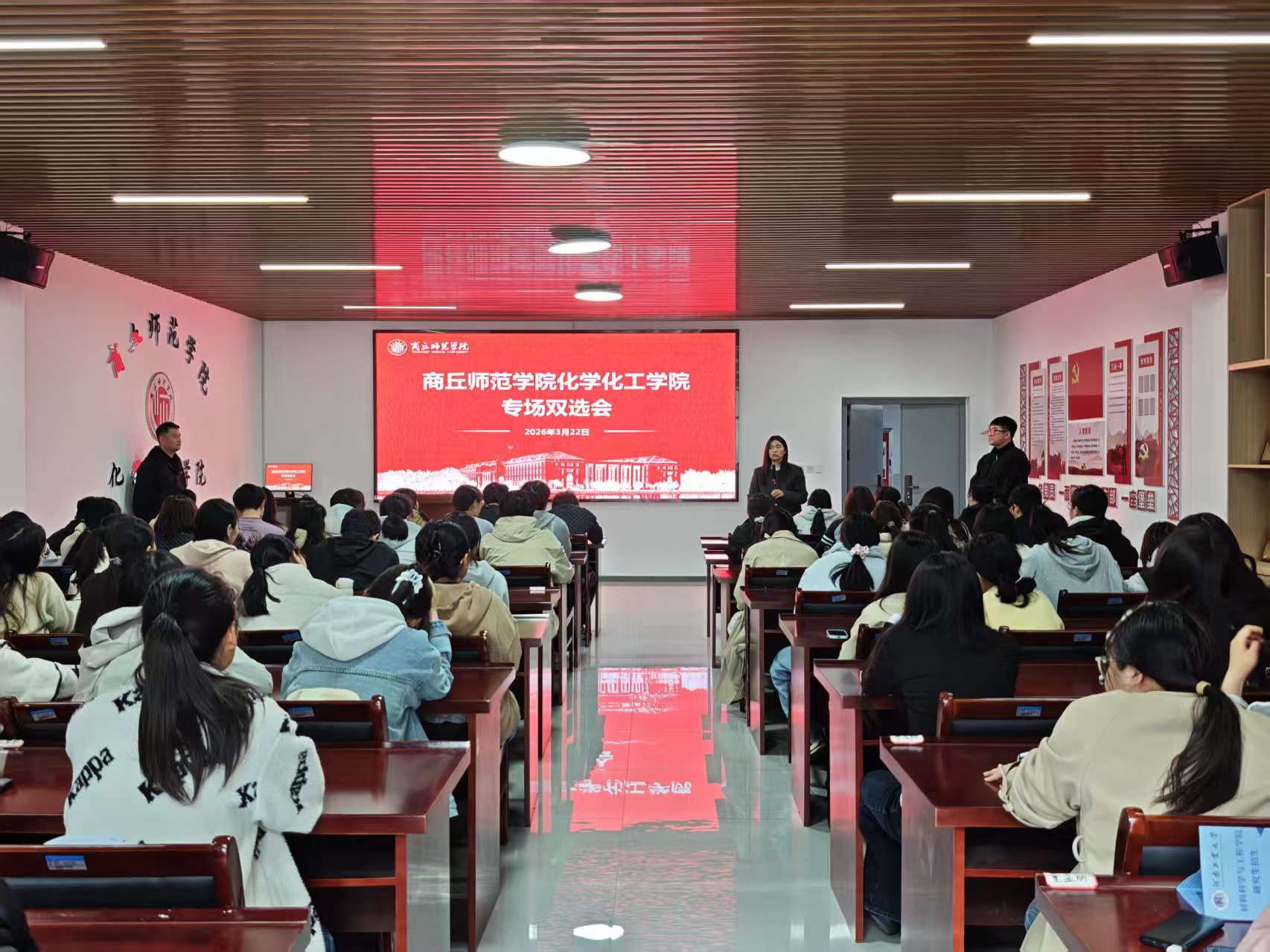3月22日,化学化工学院2026届毕业生专场双选会在睢阳校区工科实训大楼一楼成功举办。本次活动通过线下集中对接与政策宣讲相结合的方式,搭建起用人单位、高校与毕业生高效交流的平台。校创新创业教育与就业指导服务中心主任杨莹莹、副主任李振彪到场指导,学院全体领导班子、全体辅导员参加活动,并全程组织协调与现场服务。