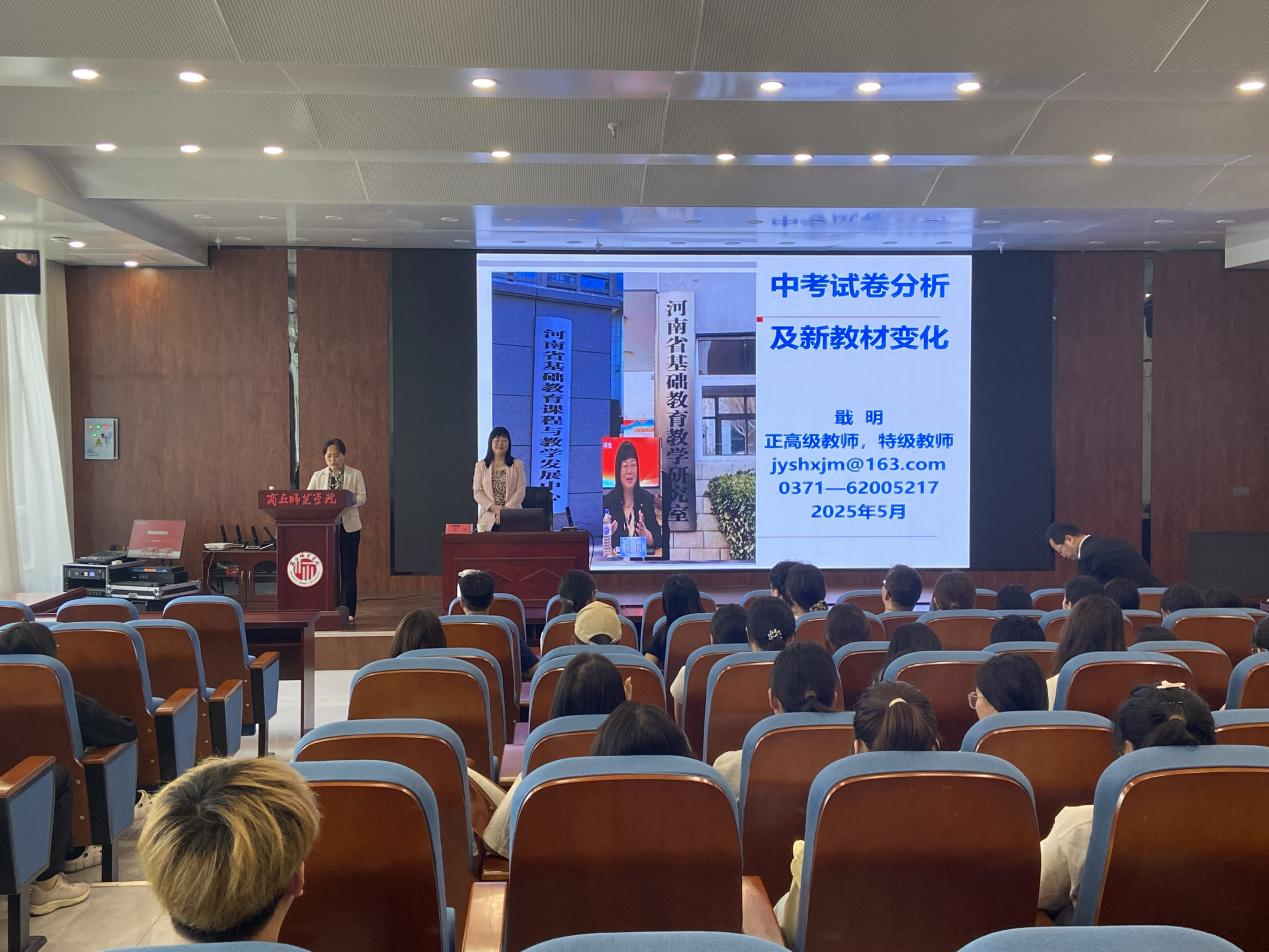 2025年5月23日,学院邀请河南省基础教育课程与教学发展中心化学学科负责人戢明老师在工科实训楼D203会议室作题为《中考试卷分析及新教材变化》的讲座。院长周艳丽、副院长王涛、学院学科教学论老师及全体公费师范生参加此次活动,活动由院长周艳丽主持。