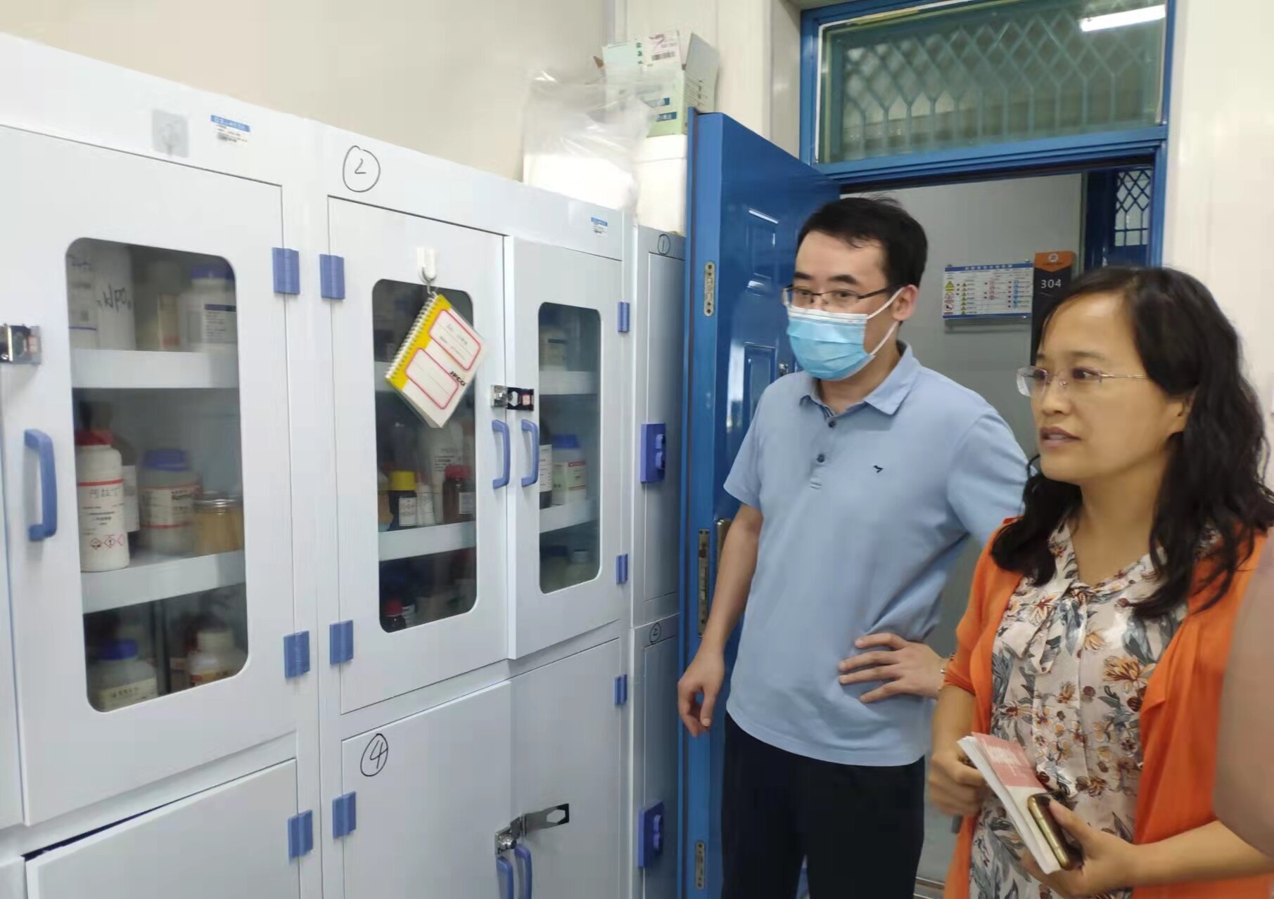 为进一步做好2022年秋季学期实验室安全工作,同时贯彻落实《教育部办公厅关于组织开展2022年高等学校实验室安全检查工作的通知》(教发厅函[2022]11号)的文件精神,9月1日下午,党委书记李海涛、院长张银堂、副院长王涛和化学实验教学中心负责人一行对学院所有科研平台及教学实验室进行了实地调研和安全检查。
