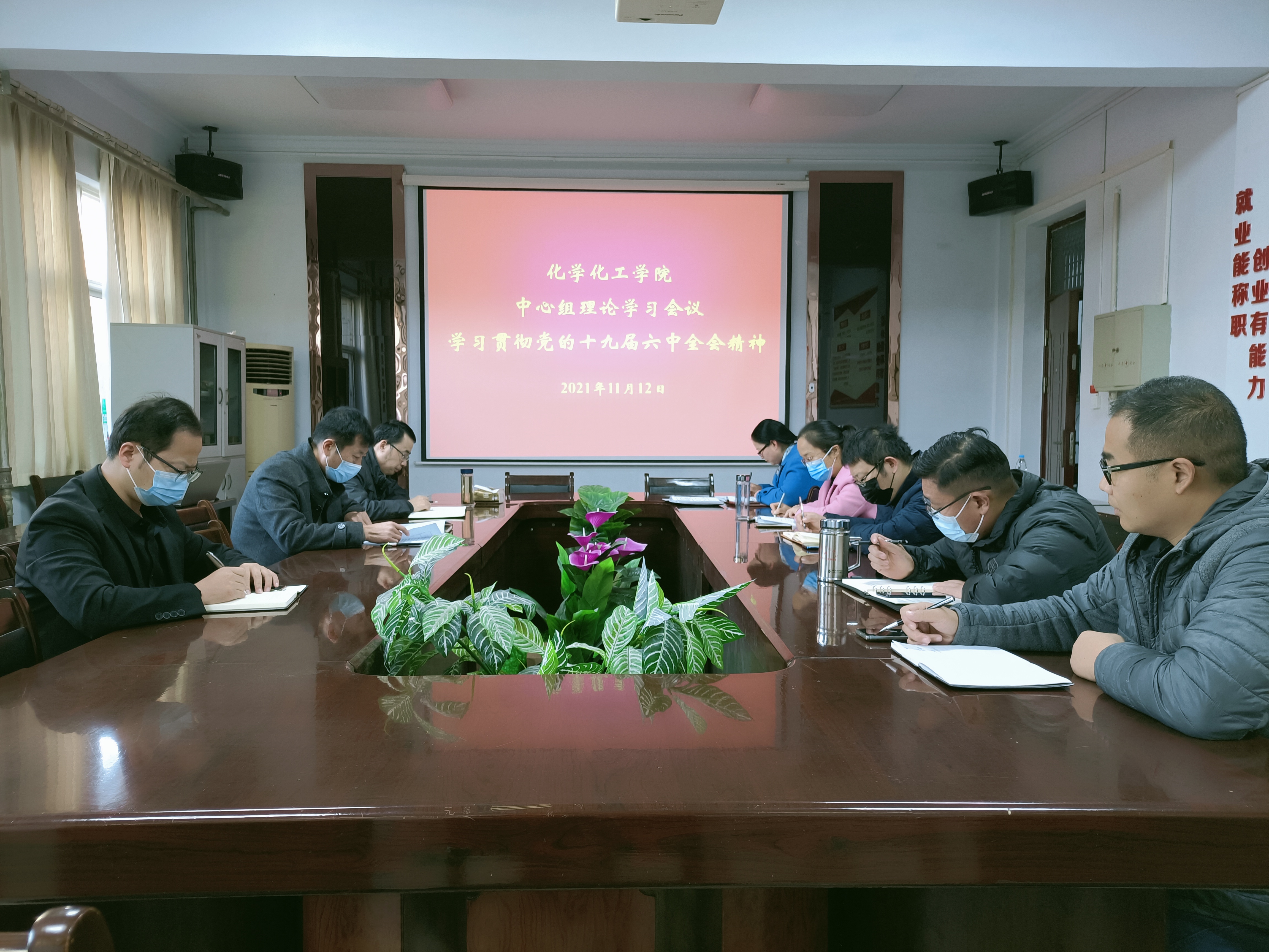 11月12日,化学化工学院召开中心组理论学习会议,学习贯彻党的十九届六中全会精神,研究做好下一步工作,院党委书记李海涛主持会议。