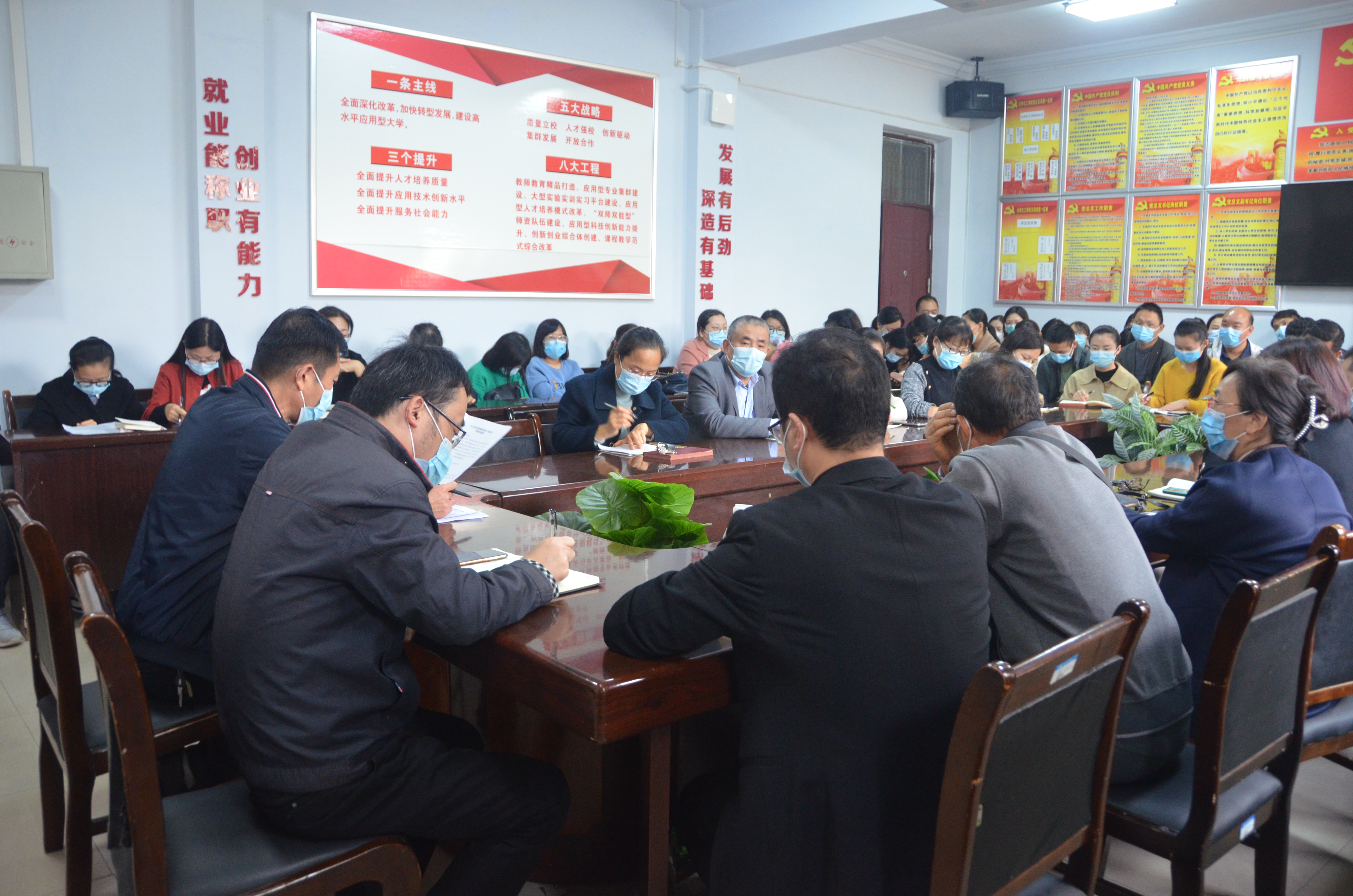 会议首先传达学习河南省委书记楼阳生在中国共产党河南省第十一次代表大会上的讲话精神,并要求全体教职工深化落实,领会精神实质、把握核心要义、锚定学校十四五规划目标。之后,学习了《求是》杂志发表的习近平总书记重要文章《坚定理想信念补足精神之钙》,并指出要坚定理想信念,坚守共产党人精神,追求始终是共产党人安身立命的根本。最后,传达学习了习近平总书记在深入推动黄河流域生态保护和高质量发展座谈会上的重要讲话精神。与会人员一致认为,习近平总书记的重要讲话立意高远、内涵丰富,展现了大国领袖的使命担当、高远深邃的战略眼光、统揽全局的系统观念、至深至厚的人民情怀,发出了为黄河永远造福中华民族而不懈奋斗的新号令,为我们做好下步工作提供了根本遵循和行动指南。