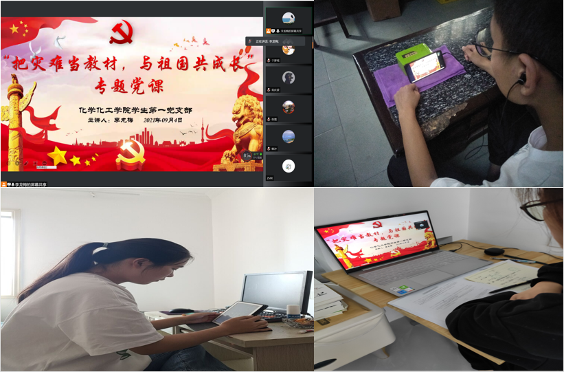 为进一步巩固“把灾难当教材,与祖国共成长”主题教育活动成果,持续把疫情灾情危机化为教育契机,不断增强思想政治教育的针对性、实效性,9月3日-6日,化学化工学院学生党支部组织开展专题党课,各支部书记主讲,全体党员、入党积极分子参加。