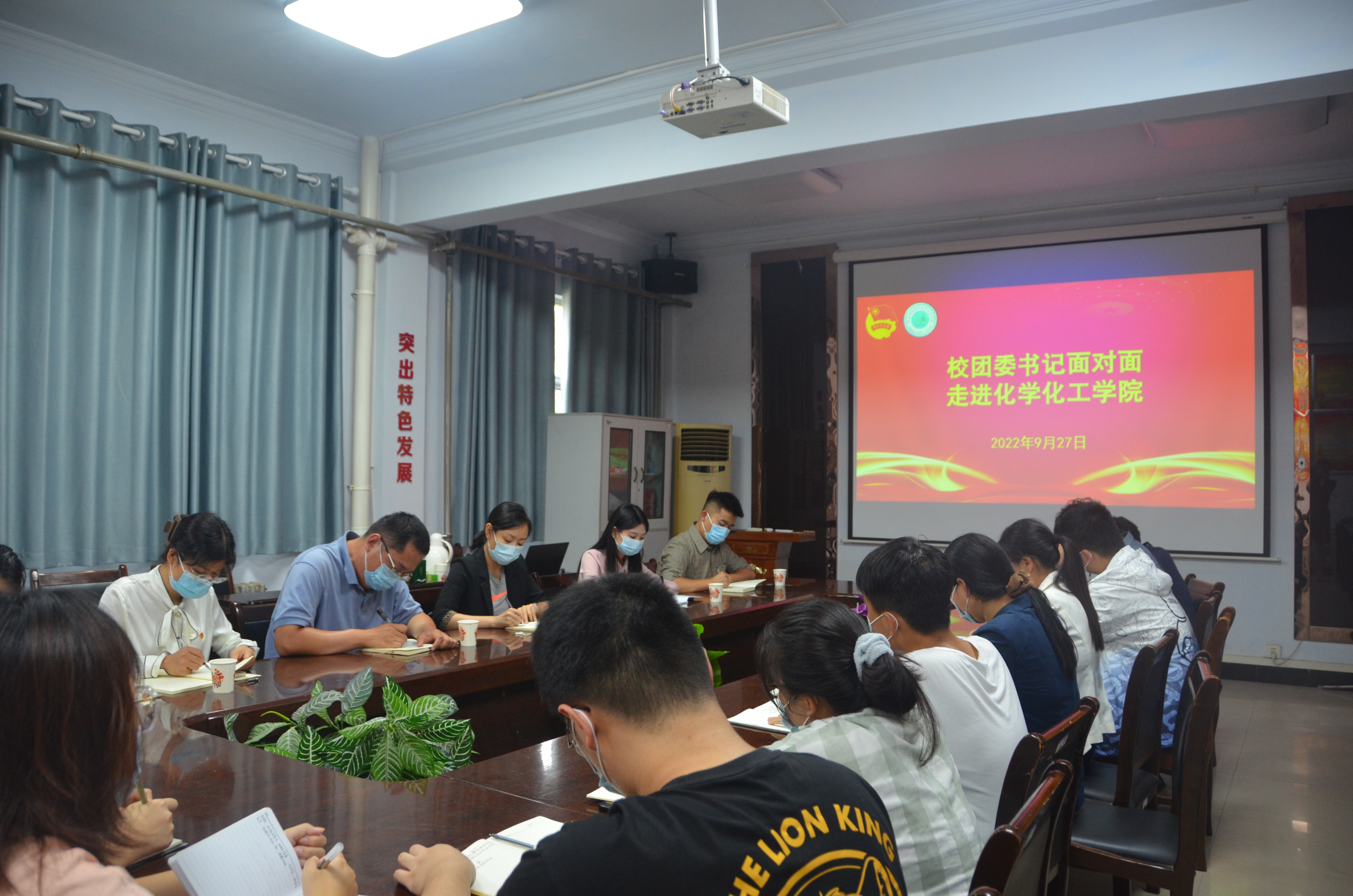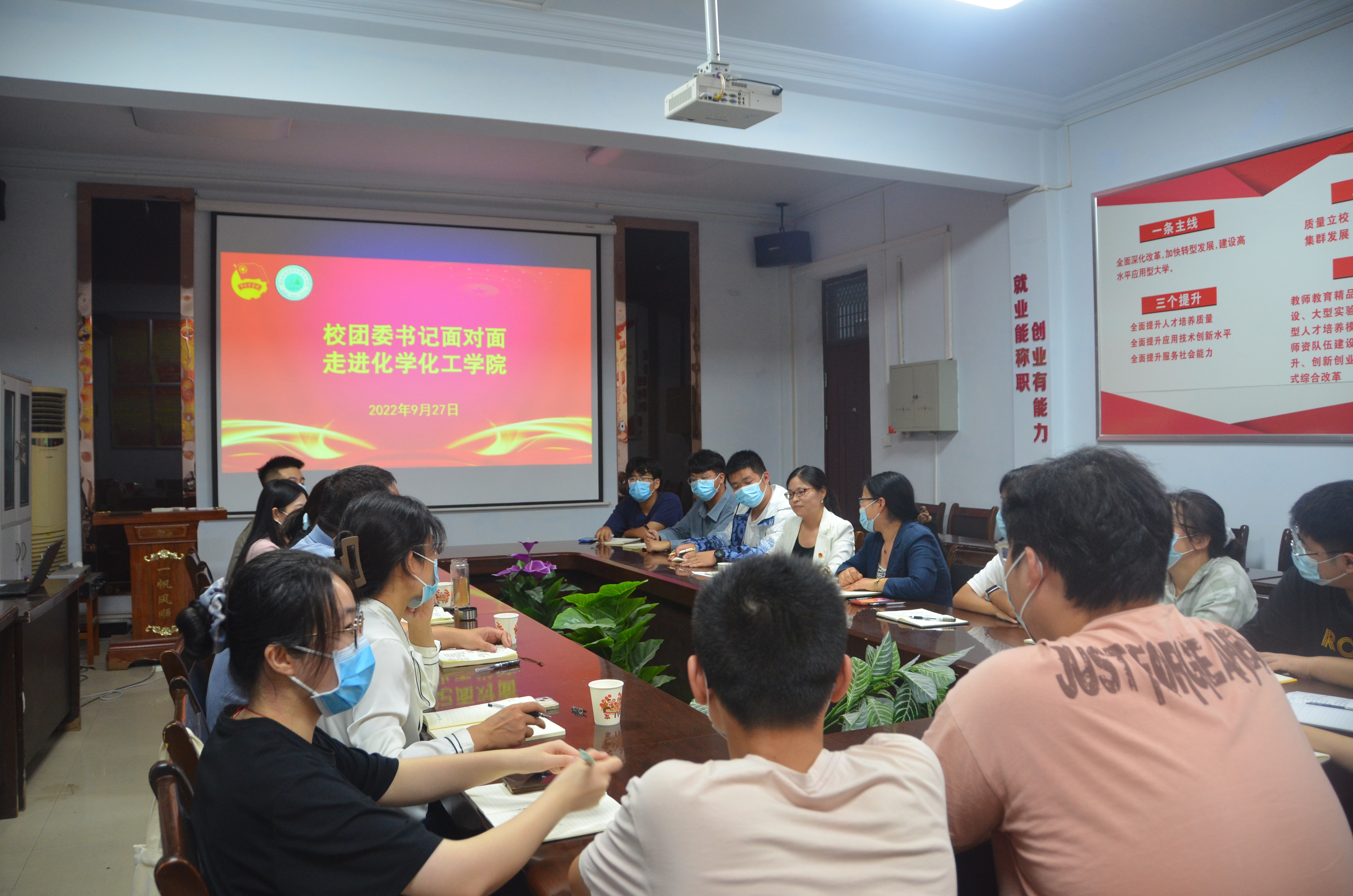 为深入了解基层团委共青团工作开展情况,倾听青年学生心声,9月27日下午,校团委书记一行4人深入化学化工学院与青年学生代表开展面对面交流活动。校团委书记刘培培、校团委宣传部部长张颖辉、社团管理部副部长邵一方、大学生艺术教育中心李杰老师、测绘与规划学院团委书记任静晓出席本次活动。化学化工学院党委副书记张颜梅、院团委副书记郭家瑞以及12名学生代表共同参会。郭家瑞主持活动。