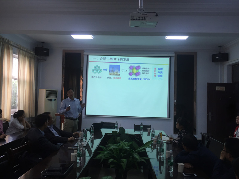 报告会上,杨国昱教授从氧合团簇化学的特点、研究和应用现状出发,提出当前该领域所面临的重要问题,并介绍了他们课题组基于缺位导向、缺位协同导向、导向组装、配体诱导、协同配位及自聚合与诱导聚集等学术思想所取得的一系列创新性研究成果,形成了独特的氧合团簇化学研究体系,不仅推动了氧合团簇化学的发展,而且被国内外同行多次引用和高度评价。李建荣教授介绍了其在金属有机多孔材料方面开展的工作。这类材料的结构和性能多样并且容易调控,在多个领域具有潜在的应用价值。李建荣教授在报告中介绍了近期在该领域的研究结果,包括MOPs的可控合成及新合成策略的发展和基于MOPs构筑单元的MOFs的设计合成及其在膜分离、气体吸附等领域的潜在应用。赵斌教授从金属有机框架(MOFs)的研究现状出发,向大家介绍了其团队主要工作:从金属节点的选择上进行创新,通过选用非常见低氧化态/构筑金属-金属键/高核数金属簇等手段,构筑新型MOFs,并从化合物的分子结构,电子结构及功能性方面进行研究。报告结束后,三位教授与在座师生进行了亲切交流并对学生提出的问题进行了解答。