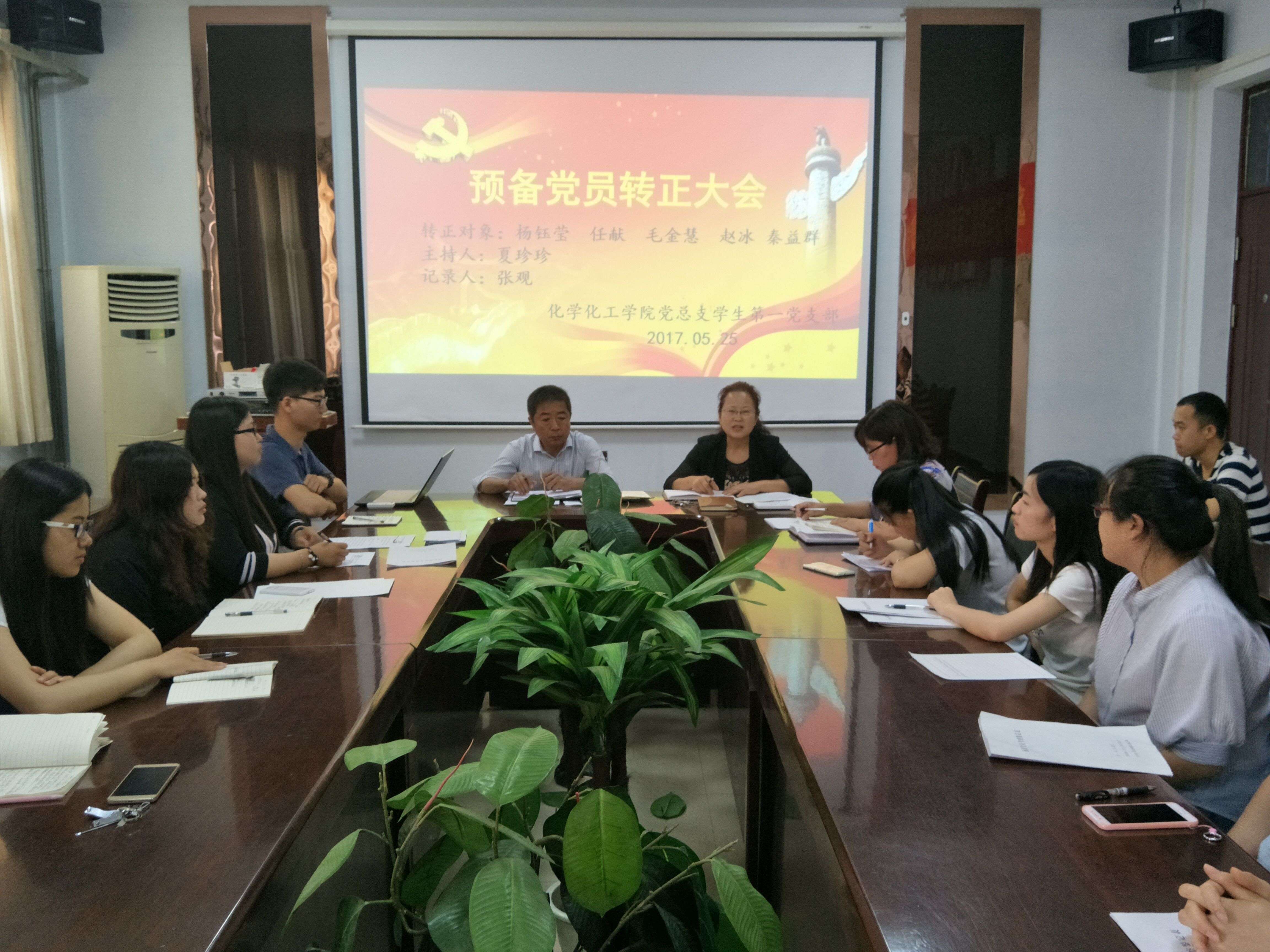 2017年05月25日,永利23411集团党总支学生第一、第二、第三党支部分别于七号楼院会议室召开预备党员转正大会,讨论关于杨钰莹等16名同志按期转为中共正式党员的问题。永利23411集团党总支书记韩忠民、党总支副书记刘瑛出席会议、辅导员刘双、李可刚、郭家瑞及各支部党员参加会议。