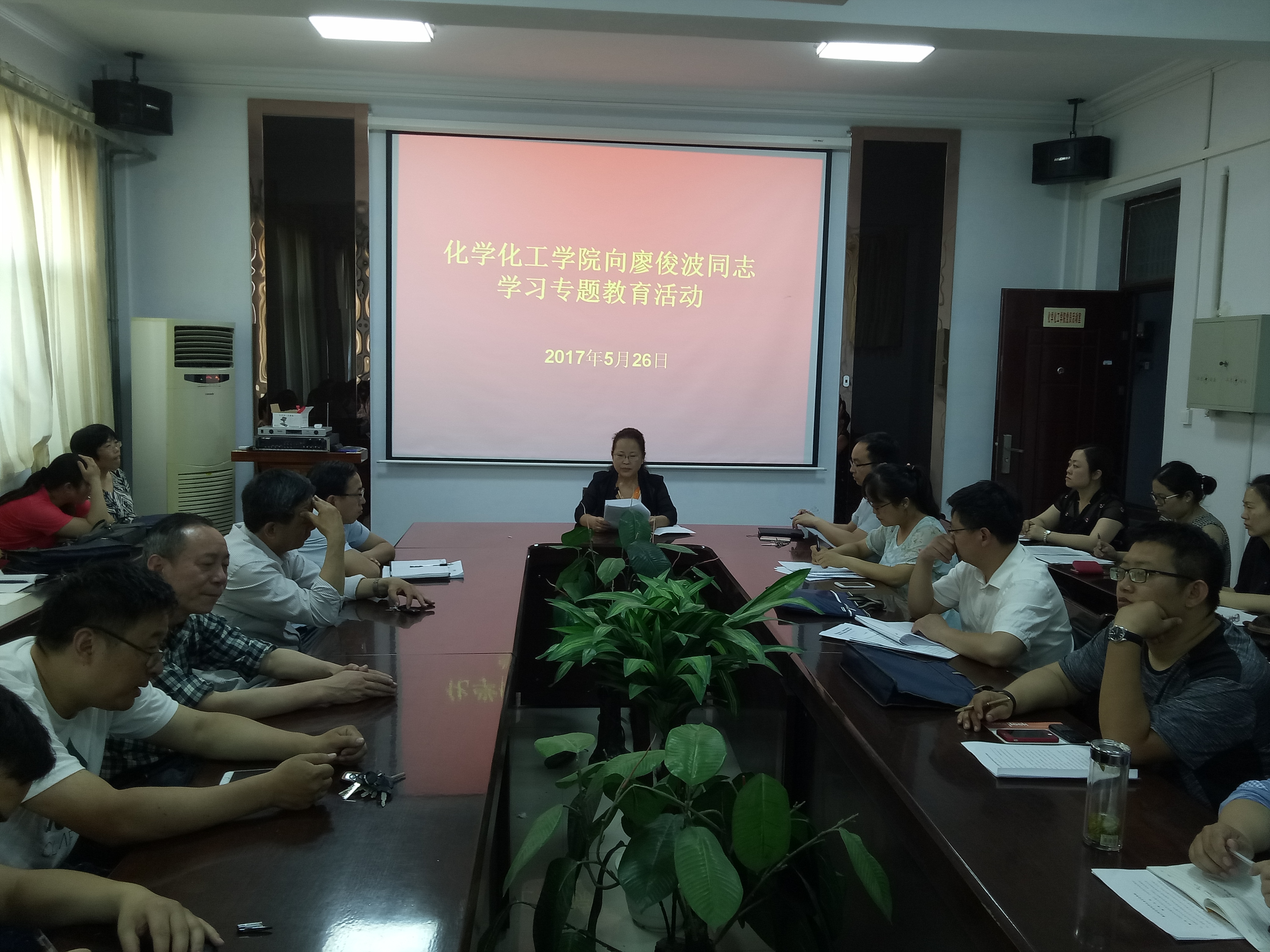 5月26日下午,化学化工学院在7号楼一楼院会议室开展向廖俊波同志学习专题教育活动,永利23411集团党总支副书记刘瑛、副院长孟团结、周艳丽及全体教职工参加了活动,活动由党总支副书记刘瑛主持。