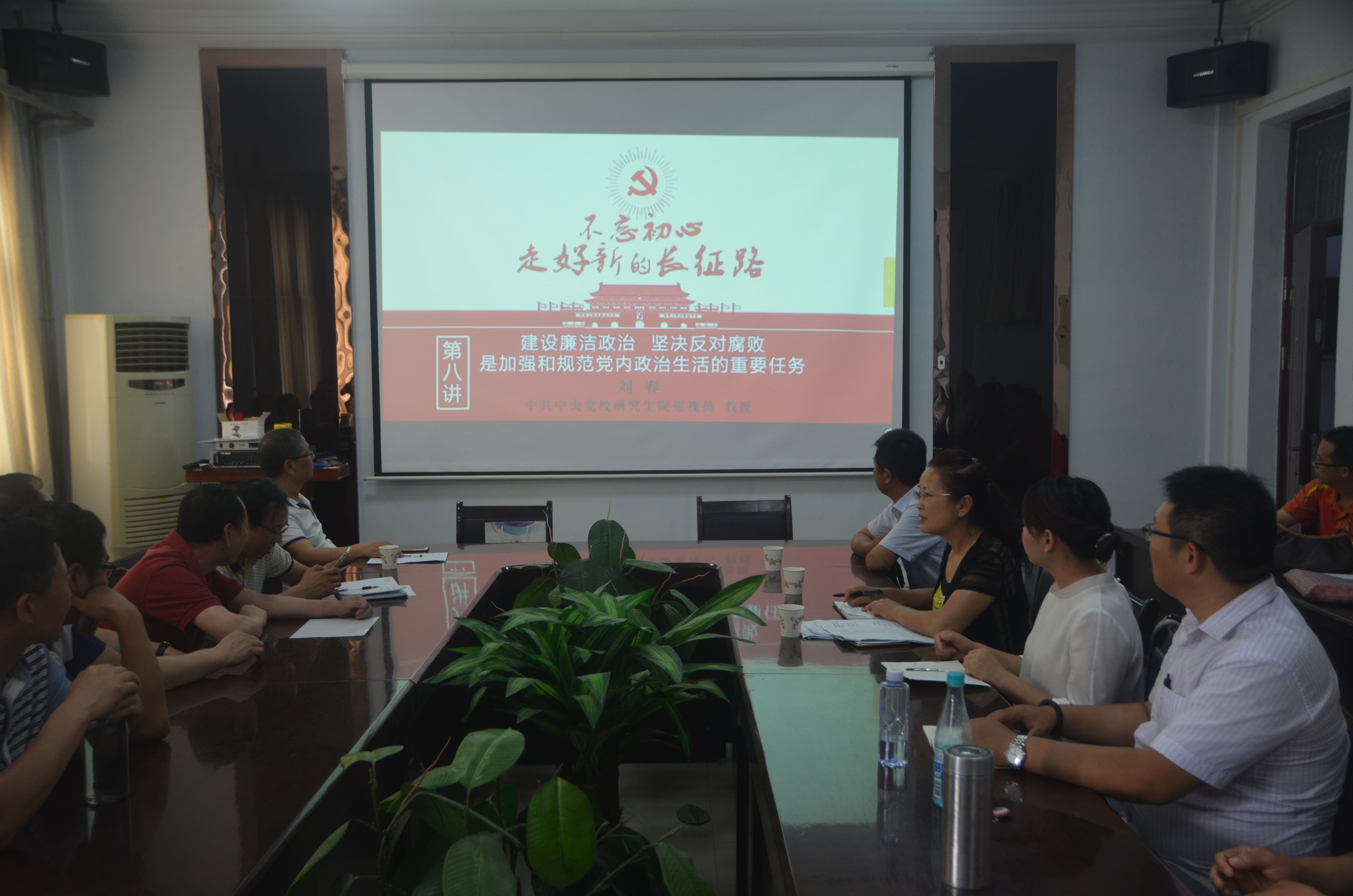 专题会议上,全体老师观看了由中共中央党校研究生院巡视员刘春作的题为《建设廉洁政治,坚决反对腐败是加强和规范党内政治生活的重要任务》的专题报告视频。之后,韩书记作了讲话,他对持续抓好六中全会精神的贯彻落实,推动全面从严治党向纵深发展,提出了具体要求,并指出各位老师要深刻学习领会,以思想到位、行动对标带动各级贯彻落实,推动全会精神落到实处,要进一步统一思想认识,坚定不移推进全面从严治党,以党的建设新成效迎接党的十九大胜利召开。