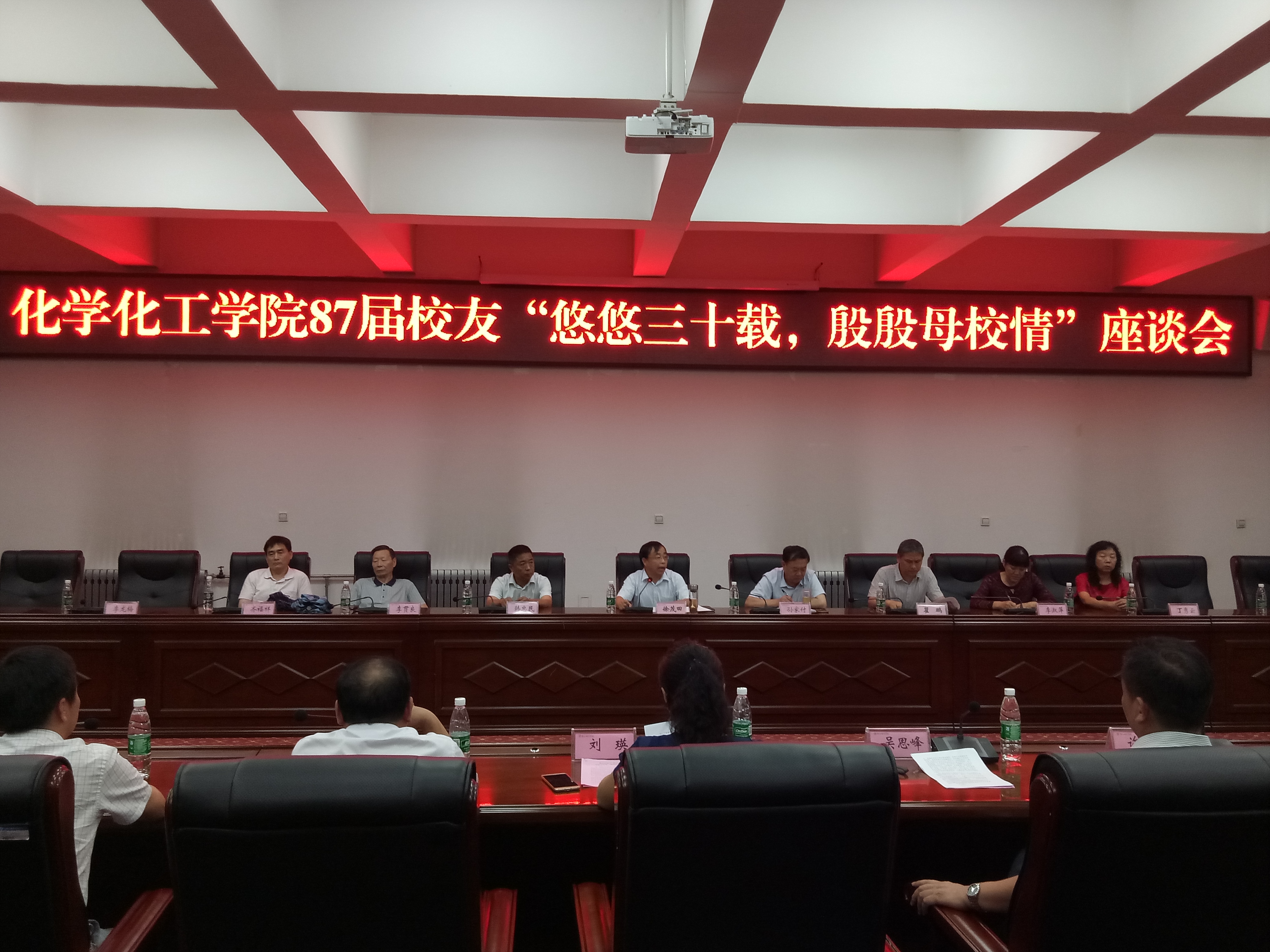 2017年7月15日下午,化学化工学院87届毕业生重返母校,在平原路校区1号楼417会议室召开毕业三十周年座谈会。副校长徐茂田老师,校地合作处处长、校友办公室主任孙家付老师,化学化工学院党总支书记韩忠民老师、院长瞿鹏老师、团总支书记李龙梅老师,原化学科党总支书记李贯良老师,班主任李淑萍老师、班主任齐福祥老师、实验室管理丁秀云老师出席了座谈会,座谈会由87届校友刘 瑛、吴思锋主持。