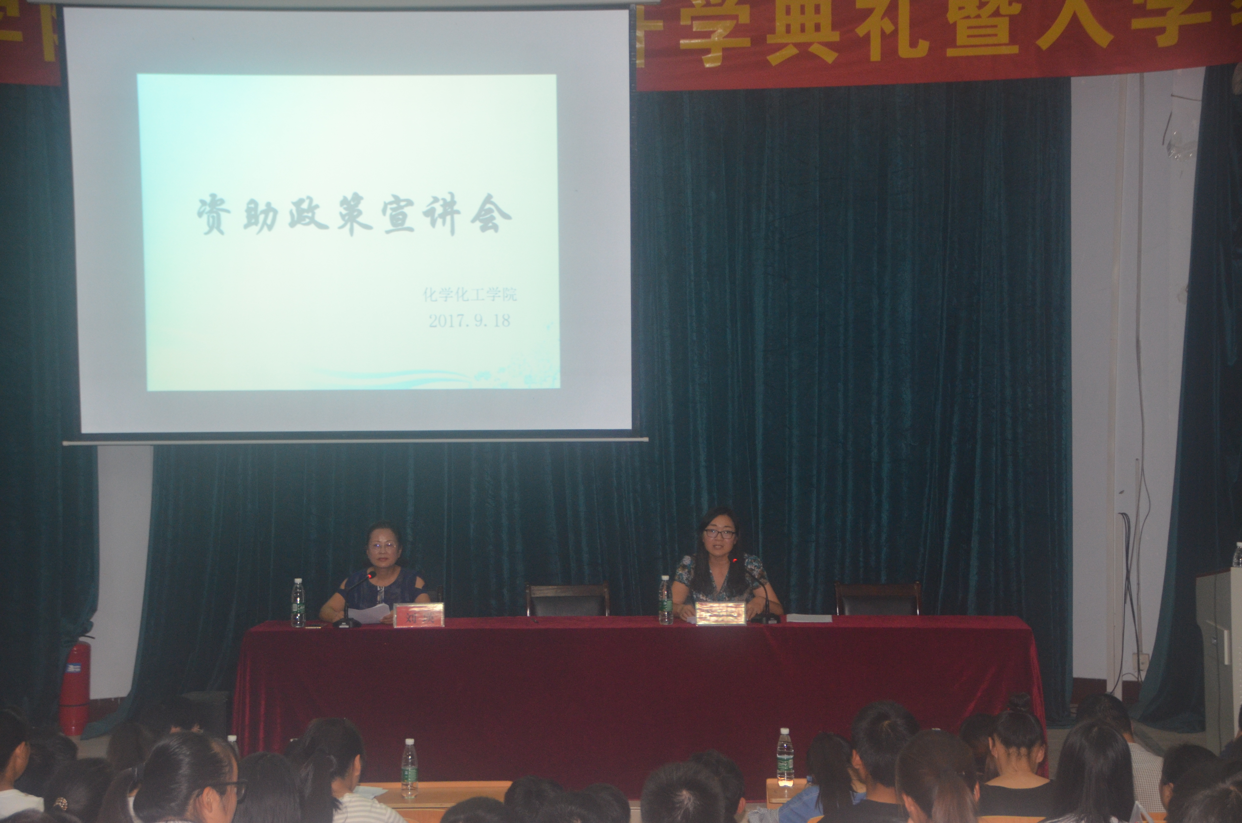 9月18日晚,永利23411集团于我校文化路校区物电楼报告厅召开了“化学化工学院2017级新生资助政策宣讲大会”,永利23411集团党总支书记韩忠民、院长瞿鹏、党总支副书记刘瑛、副院长孟团结、团总支书记李龙梅、办公室主任姬红彬老师、教学办公室主任胡春华、教师代表张付力以及各年级辅导员、各班班主任出席了此次会议,永利23411集团新生参加了此次会议。会议由副书记刘瑛主持。