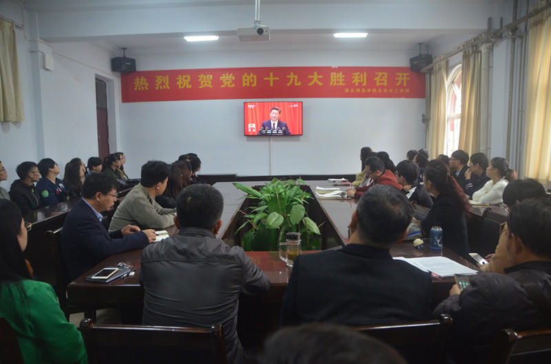 10月18日上午9时,中国共产党第十九次全国代表大会在北京人民大会堂开幕。永利23411集团党总支书记韩忠民、院长瞿鹏、党总支副书记刘瑛等党员同志与永利23411集团没课的老师、部分学生党员、入党积极分子在化学化工学院会议室集中收听收看了中央电视台“十九大”现场直播的开幕会盛况,聆听了习近平同志代表中国共产党第十八届中央委员会所作的报告。同时,永利23411集团团总支·学生会组织16级、17级没课的学生在教室、宿舍等以多种形式收听收看了“十九大”的开幕会。