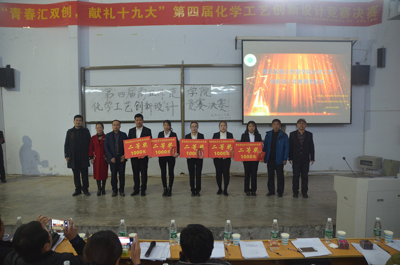 经过初赛、复赛的激烈角逐,共有八支团队进入决赛,各团队负责人进行了汇报和答辩。每支团队的讲演都十分精彩,不仅有PPT的演示,还有视频的展示,使到场领导老师赞不绝口。比赛中还有抽奖环节、改编的《青花瓷》歌曲演唱表演和化学知识抢答比赛,带动并活跃了整个会场的气氛。最终,评出了一二三等奖,其中皂动生活——打“皂”自然之美、“会呼吸”的涂层和新型氮杂化卡宾钯化合物的设计与催化性能的研究获得了一等奖,每个团队获得2000元的奖金。领导老师分别为获奖选手颁发了荣誉证书和奖金。比赛后永利23411集团孟团结副院长从专业的角度对比赛作了点评,他对永利23411集团学生提出要求与建议,他指出永利23411集团学生务必要把化学基础知识掌握牢固,学会应用所学的化学知识在相关行业、领域做出一定的成绩。最后,创新创业学院院长周鲲鹏对比赛进行了总结点评,他对活动环节的严密性、活动的扣题性、参与团队的分工合作精神和化学工艺研究方向等几个方面给予了很大的肯定和赞扬,并提出了宝贵的建议。