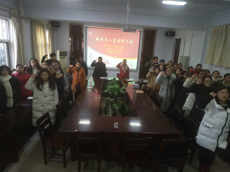1月5日,化学化工学院党总支学生党支部在学院党员活动室举行了新党员宣誓大会,院党总支书记韩忠民、院党总支副书记刘瑛出席会议,学生党支部党员了参加会议。会议由学生党支部书记于丽敏主持。