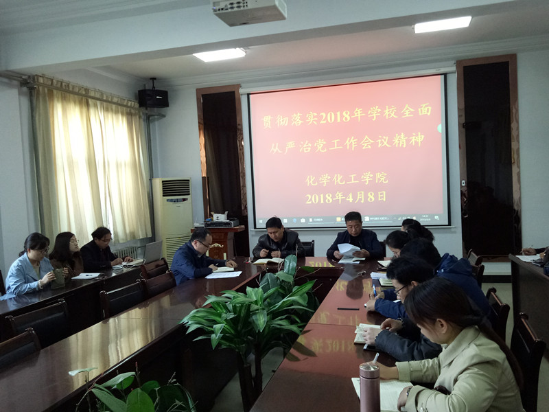 4月8日下午,化学化工学院在院会议室召开了“贯彻落实2018年学校全面从严治党工作会议精神”主题会议,院全体党政领导及全体老师参加了本次会议,会议由党总支书记韩忠民主持。
