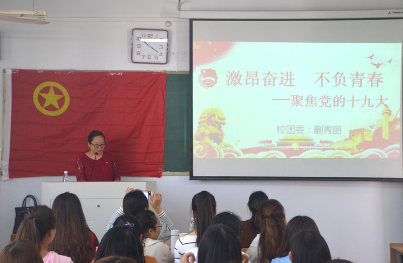 一首慷慨激昂的《五星红旗》过后,蒯书记带领老师、同学们一起聚焦十九大。首先,蒯书记从十九大会议的召开、议程主题及重要意义详细的介绍了党的十九大,并和同学们一起回顾了党的十八届一中全会到七中全会的重点。接着,蒯书记从中国共产党人的初心和使命;过去五年取得的历史性成就;中国特色社会主义进入新时代;新时代中国共产党人的历史使命;中国特色社会主义及发展战略安排以及提高保障和改善民主水平等方面介绍习近平总书记十九大报告内容。最后,李龙梅老师做出总结,希望同学们可以真正的把十九大精神烙印在心中,激昂奋进,不负青春。全体同学起立重温入团誓词,伴随着一曲悠扬的《走进新时代》,本次团课圆满结束。