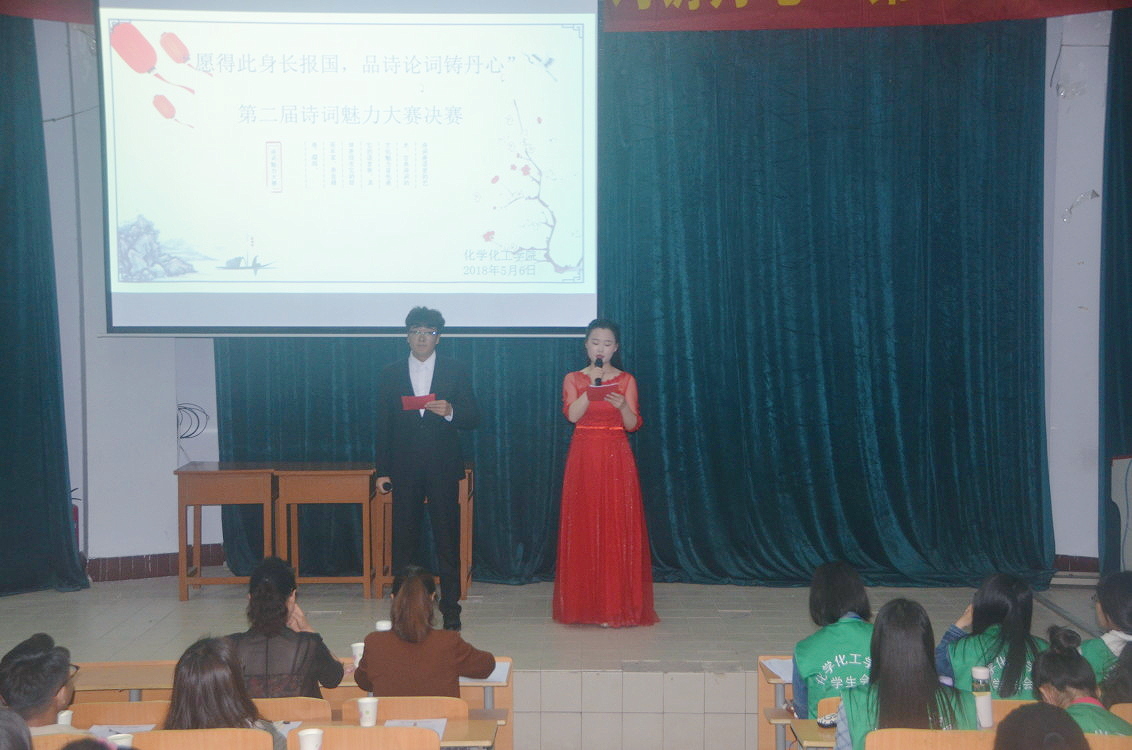 为了进一步加强中华优秀传统文化教育,弘扬传统文化,努力提高学生的人文素养,5月6日晚,化学化工学院于文化路校区物电报告厅举办了“愿得此身长报国,品诗论词铸丹心”第二届诗词魅力大赛决赛。院党总支副书记刘瑛、17级辅导员郭家瑞出席了本次比赛,院系团学干部及17级全体学生参加了此次活动。