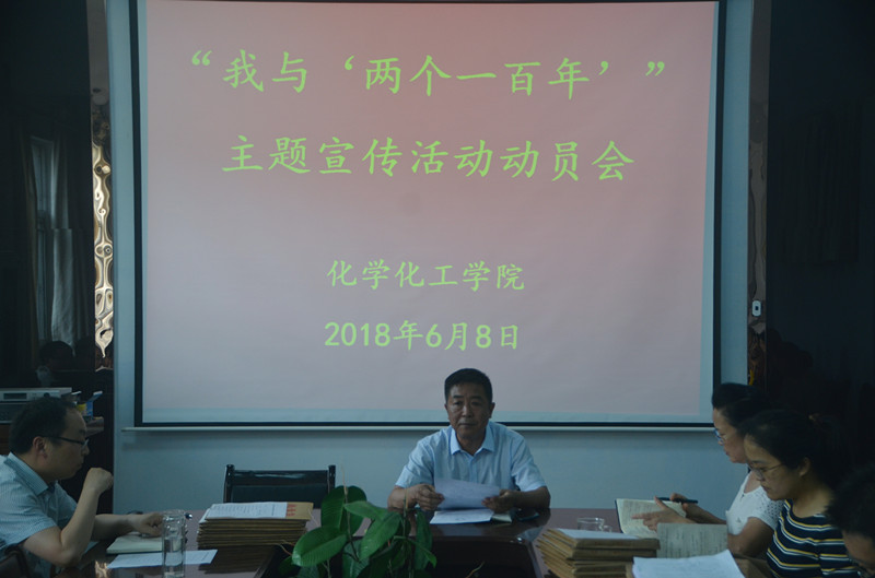 6月8日,化学化工学院于文化路校区7号楼院会议室,召开了我与“两个一百年”主题宣传活动动员大会。学院党政领导和全体教工参加了会议,党总支书记韩忠民主持会议。