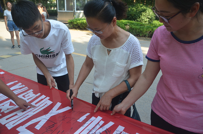 在这次活动中,老师们在条幅上签上自己的名字,为毕业生送上了最真诚的祝愿,祝愿毕业生们在未来的工作生活中事事顺利,前程似锦。老师们的祝福,更加让同学们感受到学校的温暖。