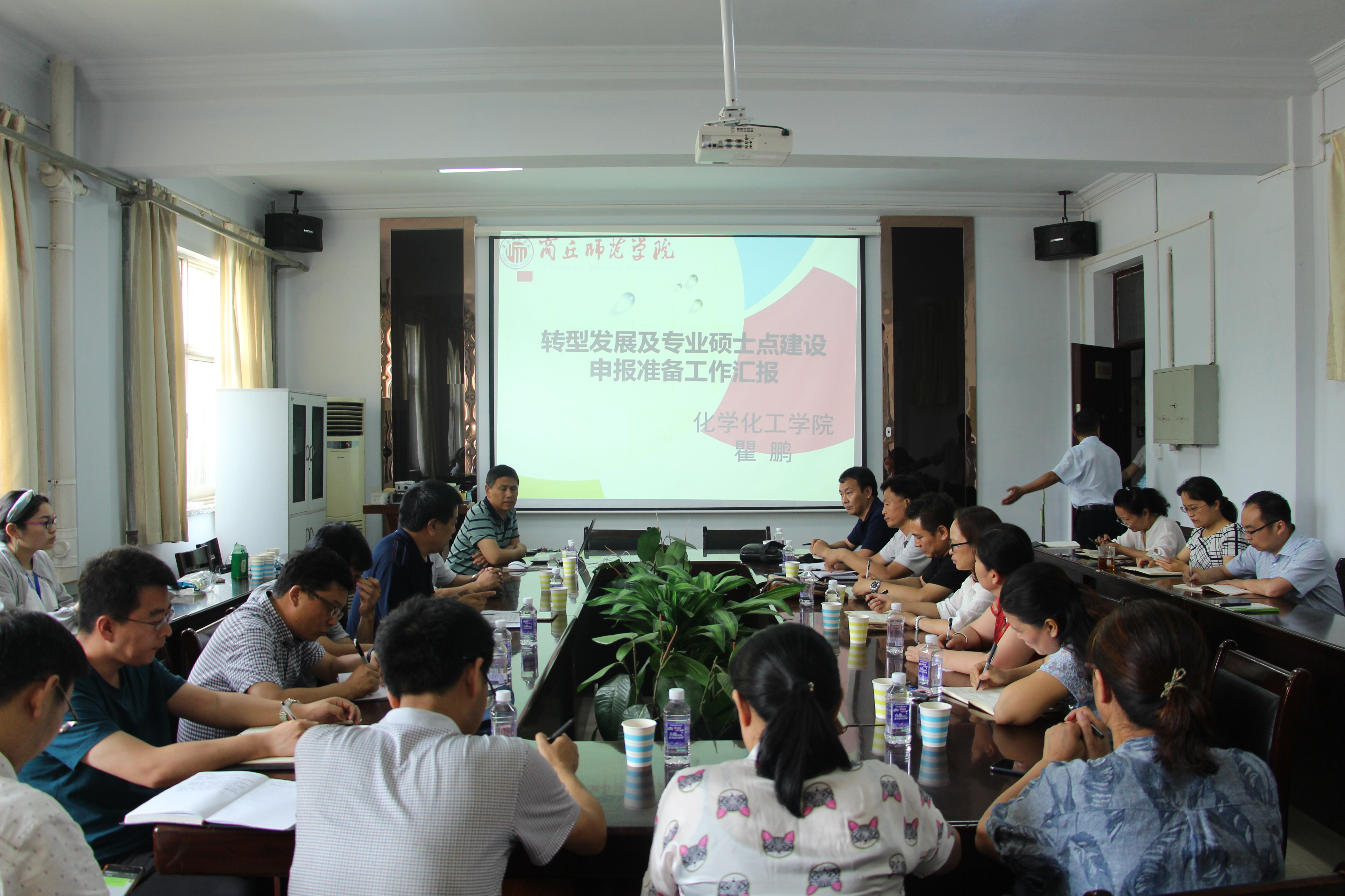 化学化工学院院长瞿鹏从建设成效、经验总结及分析、存在的问题、下一步的工作安排四个方面汇报了化学化工学院转型发展及专业硕士点建设申报工作。各位代表就化学化工学院在学科建设、绩效考核办法及人才引进等方面进行了深入的探讨。