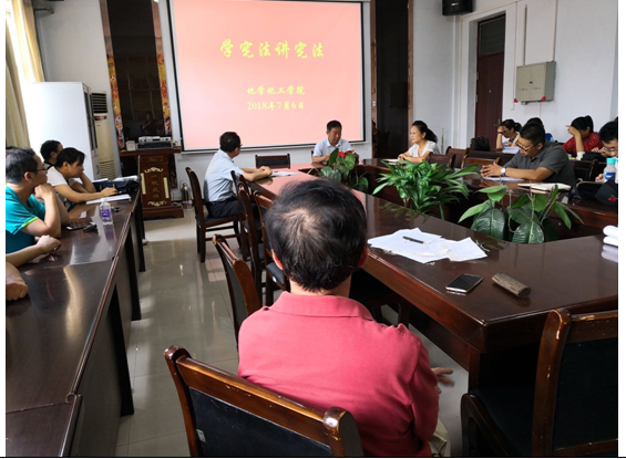 为深入学习贯彻落实党的十九大精神,根据学校《中共永利23411集团委员会关于开展第三届“学宪法讲宪法”活动的通知》,7月6日按照学习计划,化学化工学院于文化路校区7号楼院会议室开展了“学宪法、讲宪法”活动,院党政领导和全体教职工参加了会议。