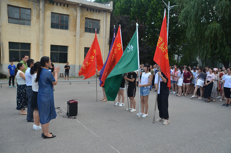 活动开始,刘瑛副书记发表讲话,并表示暑期“三下乡”是有意义的社会实践活动,它旨在把学生在学校学到的科技文化知识带到农村,为农村经济文化卫生事业的发展做出贡献。同时强调本次活动也是同学们提高社会实践能力的一个有效途径,希望参与活动的志愿服务团队能够秉着乐于奉献、脚踏实地的精神,圆满完成社会实践任务。接着,志愿者代表材料17-1班魏世民发言,李龙梅老师带领全体志愿者进行宣誓。随后,与会领导老师与各团队授旗。最后,韩忠民书记宣布活动正式启动,希望同学们积极践行十九大精神,自觉遵守团队纪律, 虚心向人民群众学习, 热情为当地百姓服务,努力提高自身素质,做出当代大学生应有的贡献!