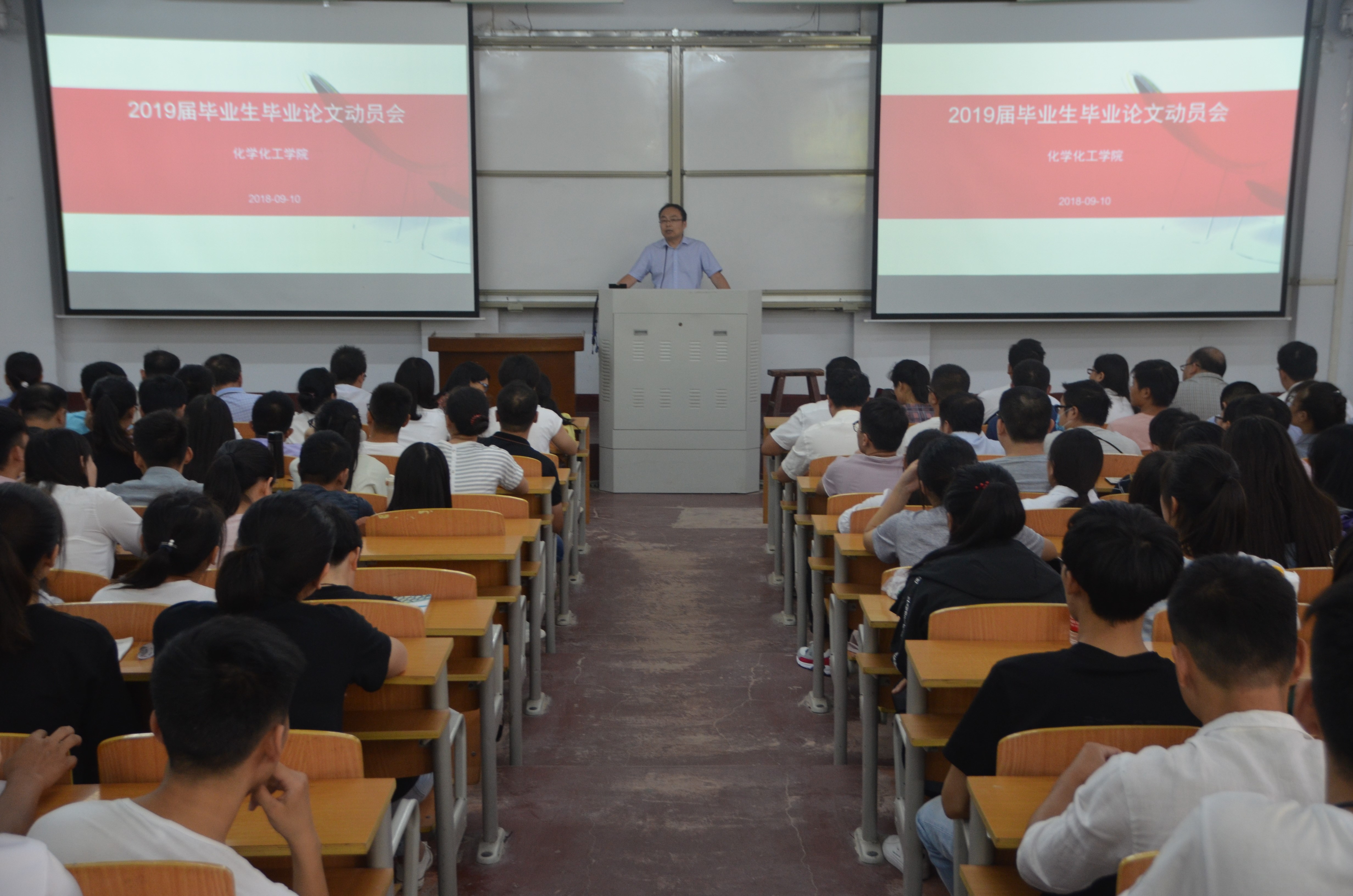 9月10日下午,化学化工学院于文化路校区1#106教室开展2019届毕业生毕业论文动员会。学院副院长孟团结主持,学院全体指导教师、19届全体毕业生参会。