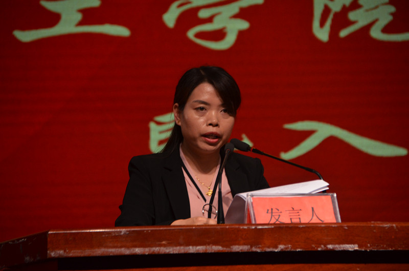 会议进入第二阶段:2018级新生资助政策宣讲及远离校园贷教育大会,大会由团总支书记李龙梅主持。