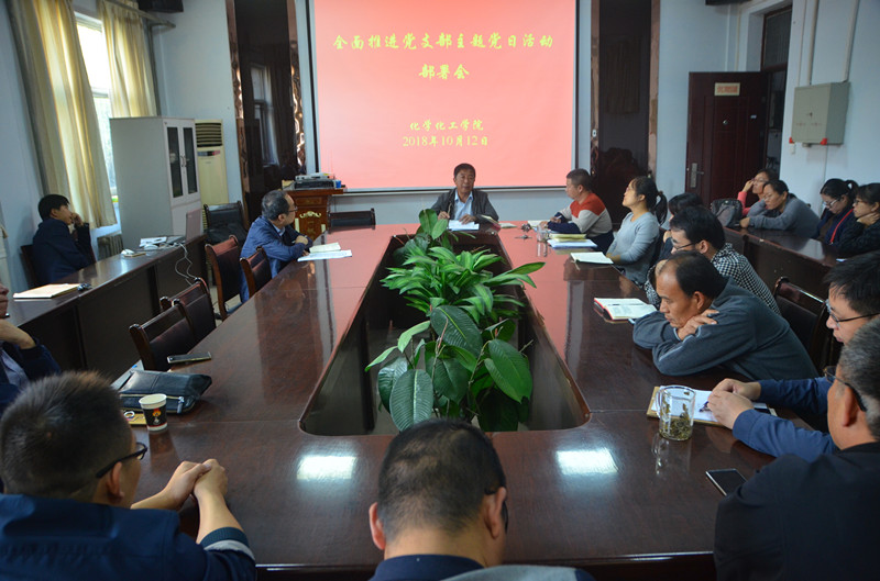 10月12日下午,化学化工学院于文化路校区7号楼会议室召开全面推进党支部主题党日活动部署会,会议由学院党总支书记韩忠民主持,副院长孟团结、周艳丽出席,全体教职工参加。