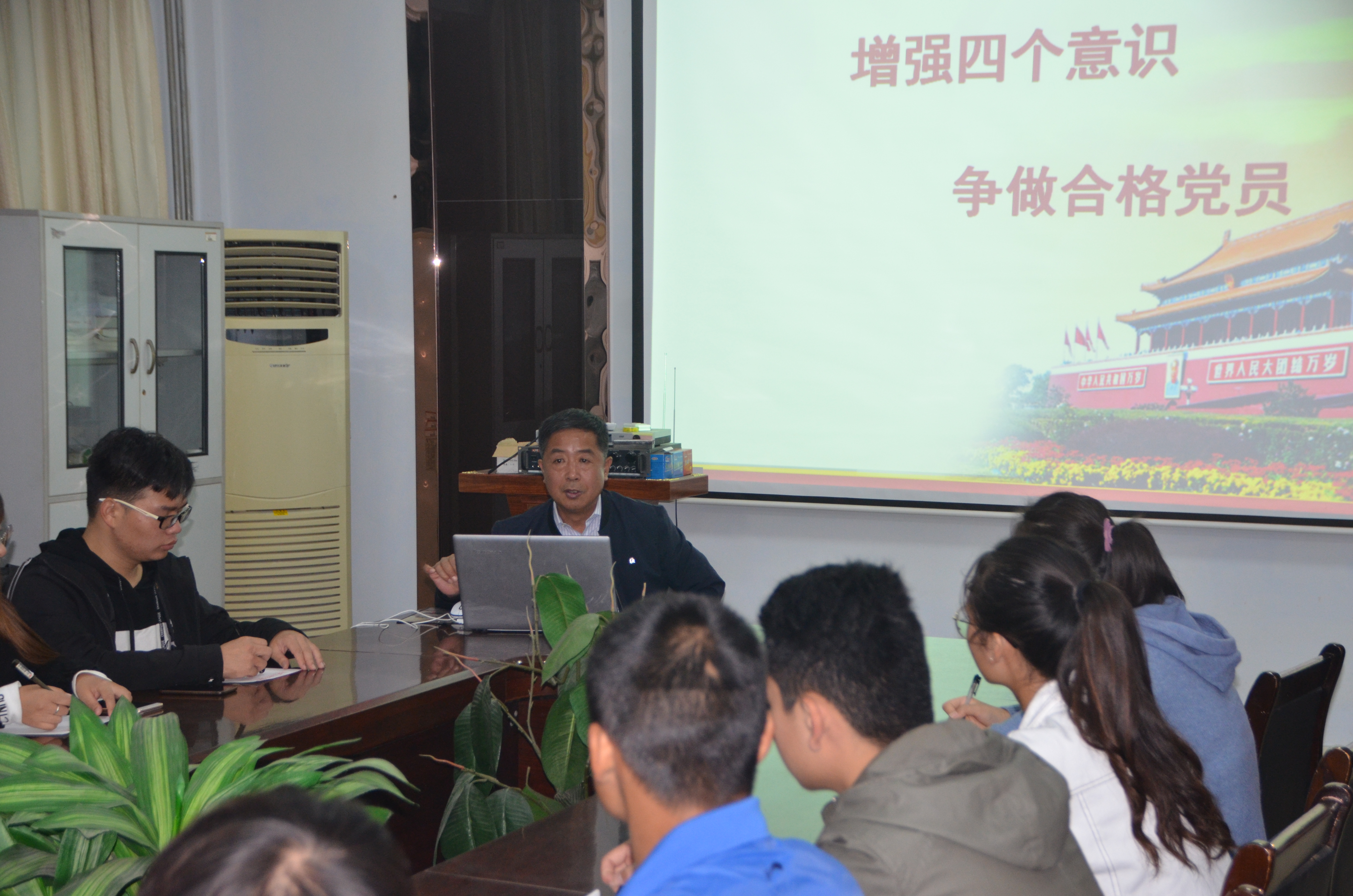 为学习贯彻落实习近平新时代中国特色社会主义思想和党的十九大精神,做好入党积极分子的培训工作,提高入党积极分子对党的理论知识的掌握,加强高校意识形态阵地建设,10月24日,化学化工学院党总支书记韩忠民在文化路校区化学化工学院会议室为入党积极分子进行《增强“四个意识” 争做合格党员》党课知识培训,全体入党积极分子参加了此次培训。