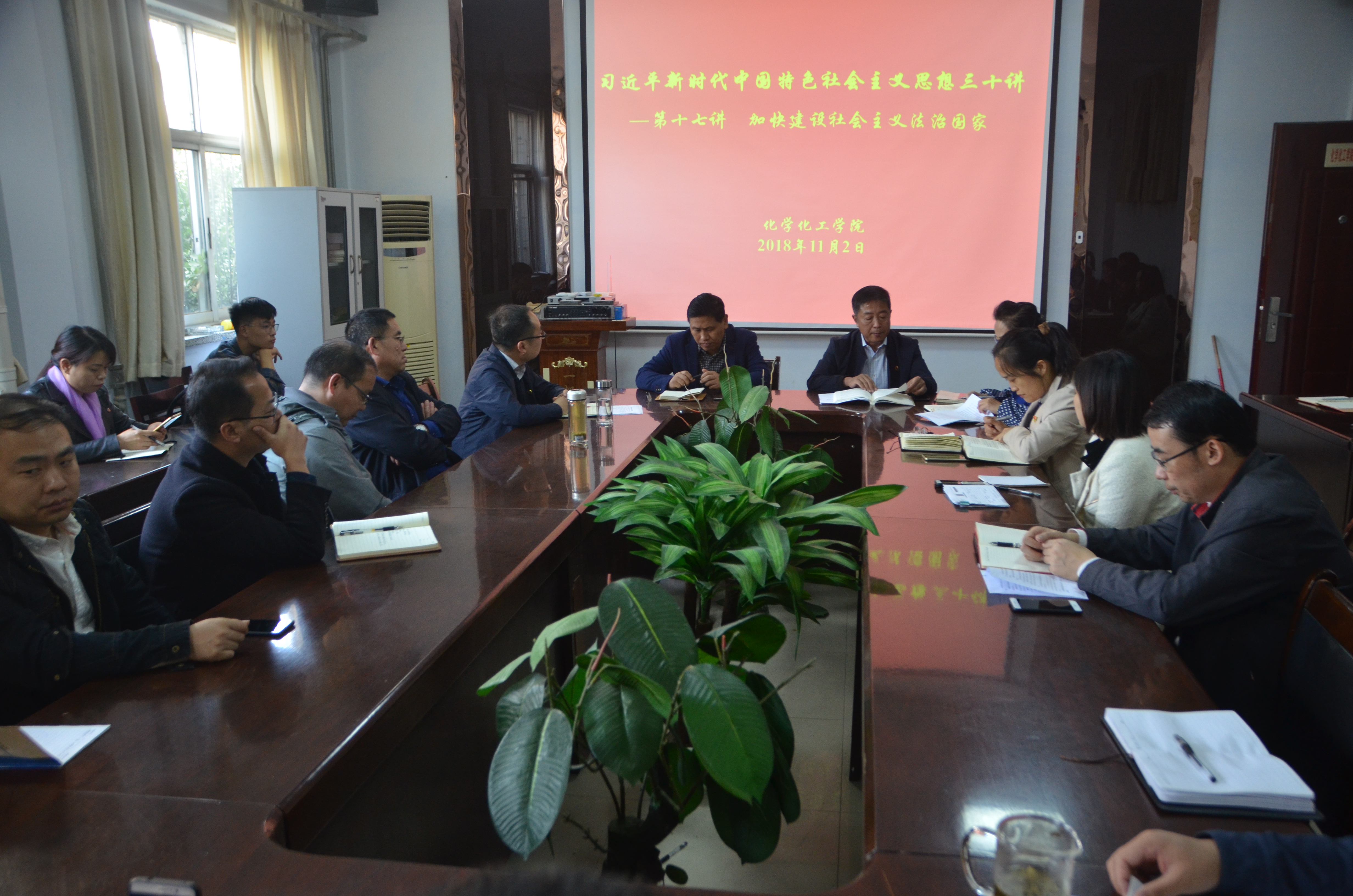 为教育引导师生充分认识学习宣传贯彻实施宪法的重大意义,全面加强全校宪法学习宣传和贯彻实施,落实立德树人根本任务,11月2日下午,化学化工学院于睢阳校区7号楼会议室召开习近平新时代中国特色社会主义思想三十讲之第十七讲学习会议。全体教职工参加了会议,会议由院党总支书记韩忠民主持。