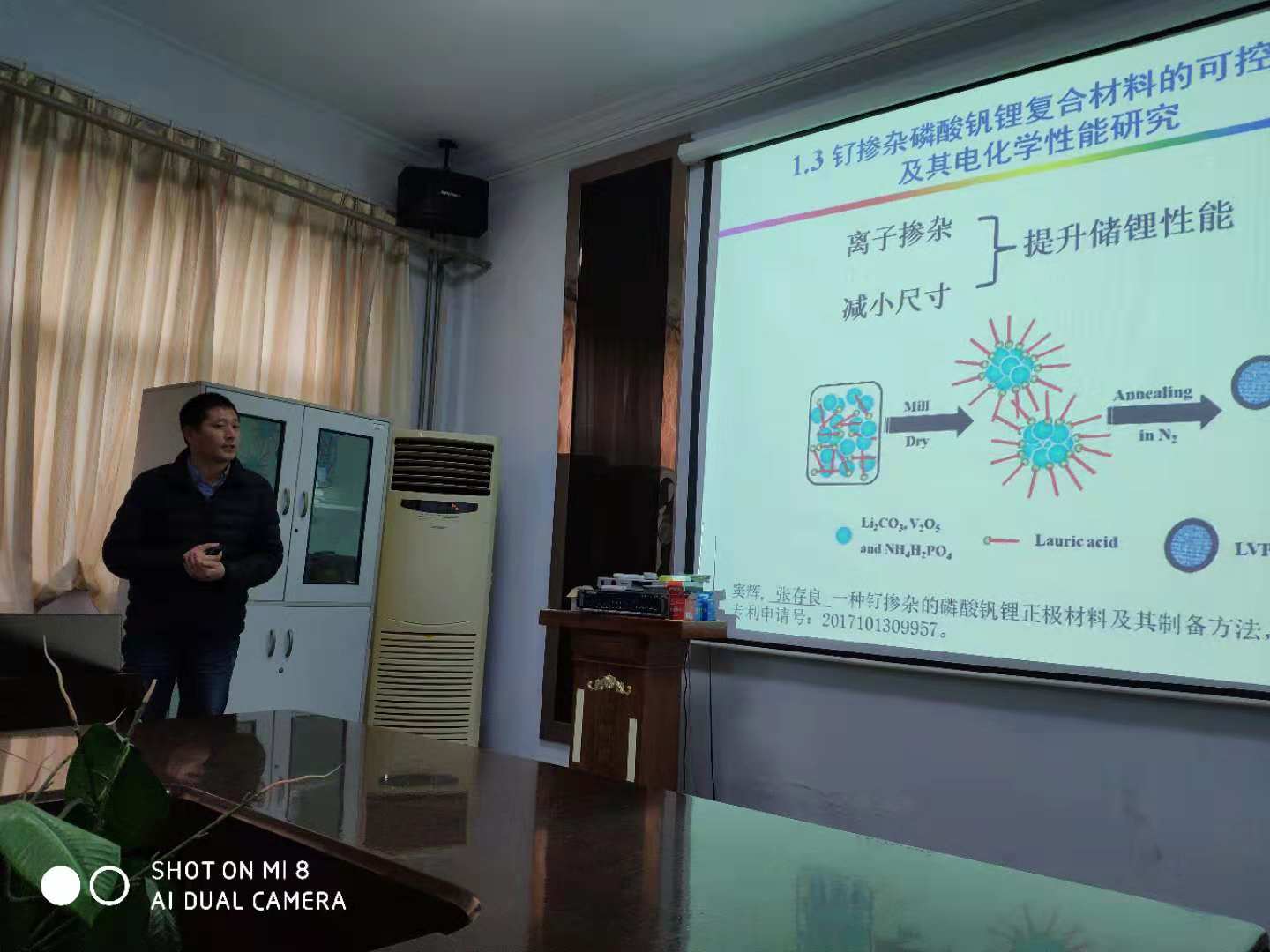 2018年11月16日下午,化学化工学院教师张存良博士在文化路校区7号楼院会议室做了题为《锂/钠离子电池电极材料磷酸钒锂/钠的制备及性能研究》的学术报告会。报告会由周艳丽副院长主持,化学化工学院全体老师参加了报告会。