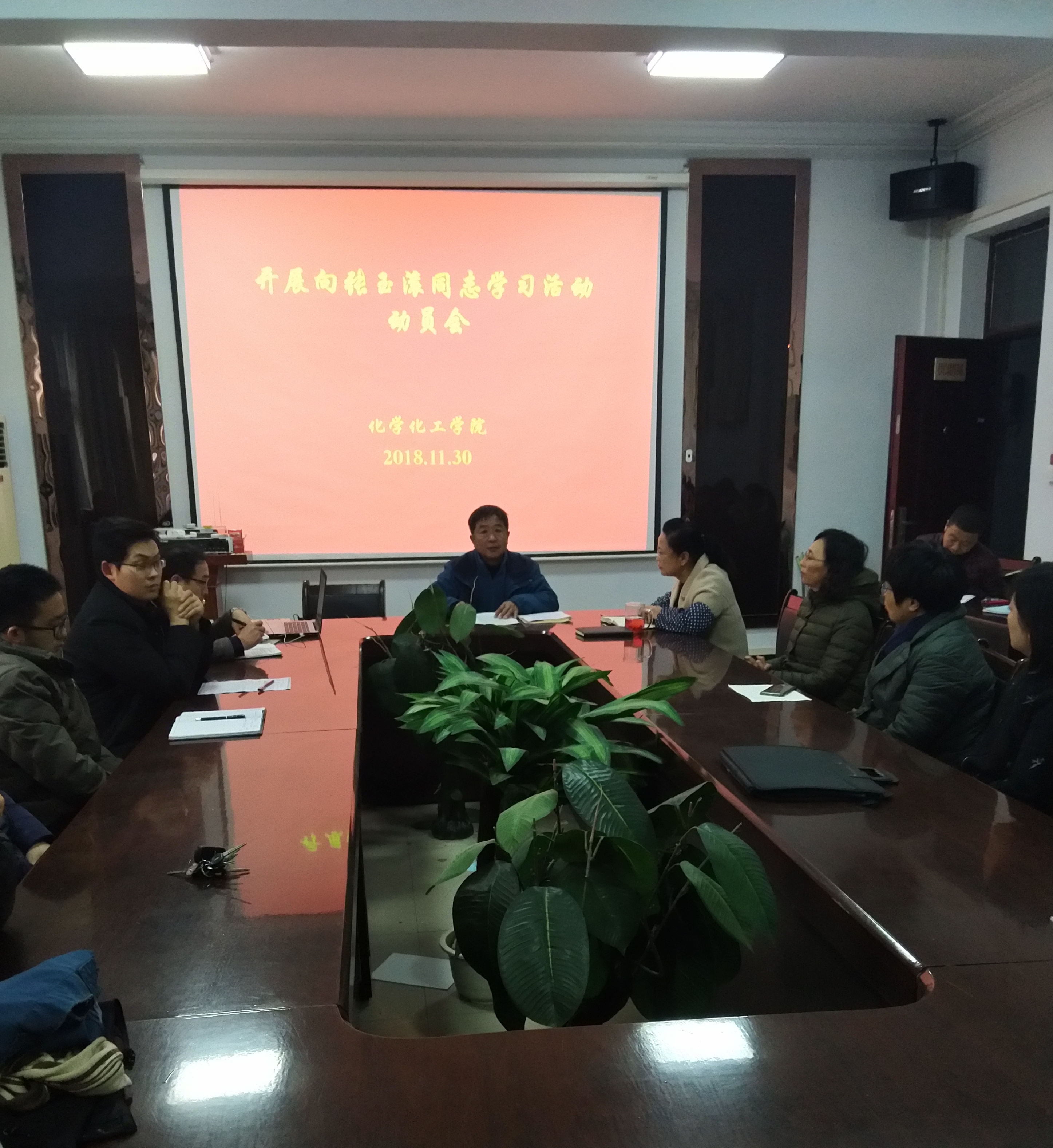 11月30日下午,化学化工学院于睢阳校区7号楼会议室召开“向张玉滚同志学习活动”动员会。全体教职工参加会议,党总支书记韩忠民主持会议。