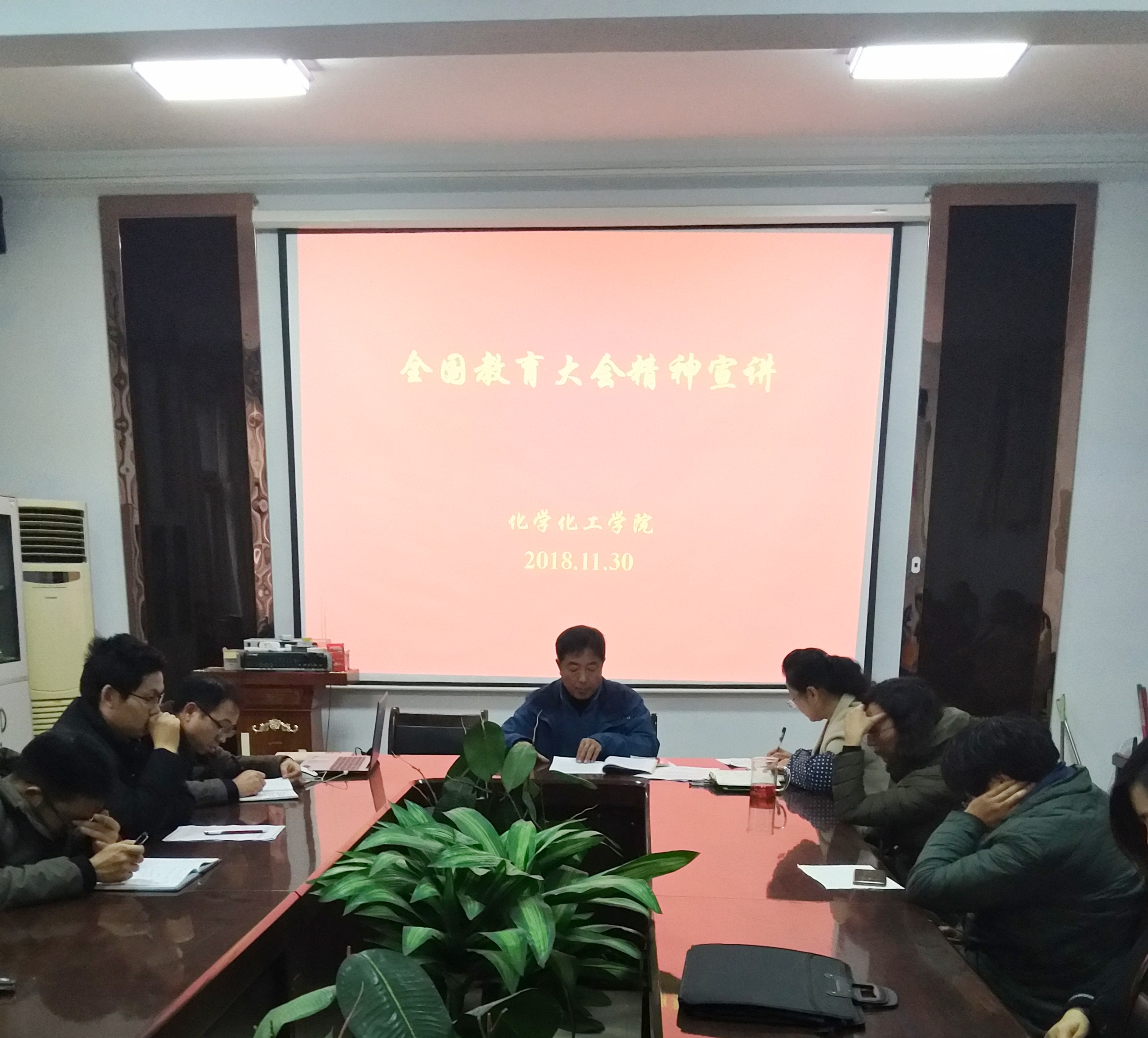 为深入学习宣传贯彻落实全国教育大会精神,进一步加强学院基层组织建设,11月30日下午,化学化工学院于睢阳校区7号楼会议室召开全国教育大会精神的理论宣讲会,全体教职工参加会议,党总支书记韩忠民主持会议。