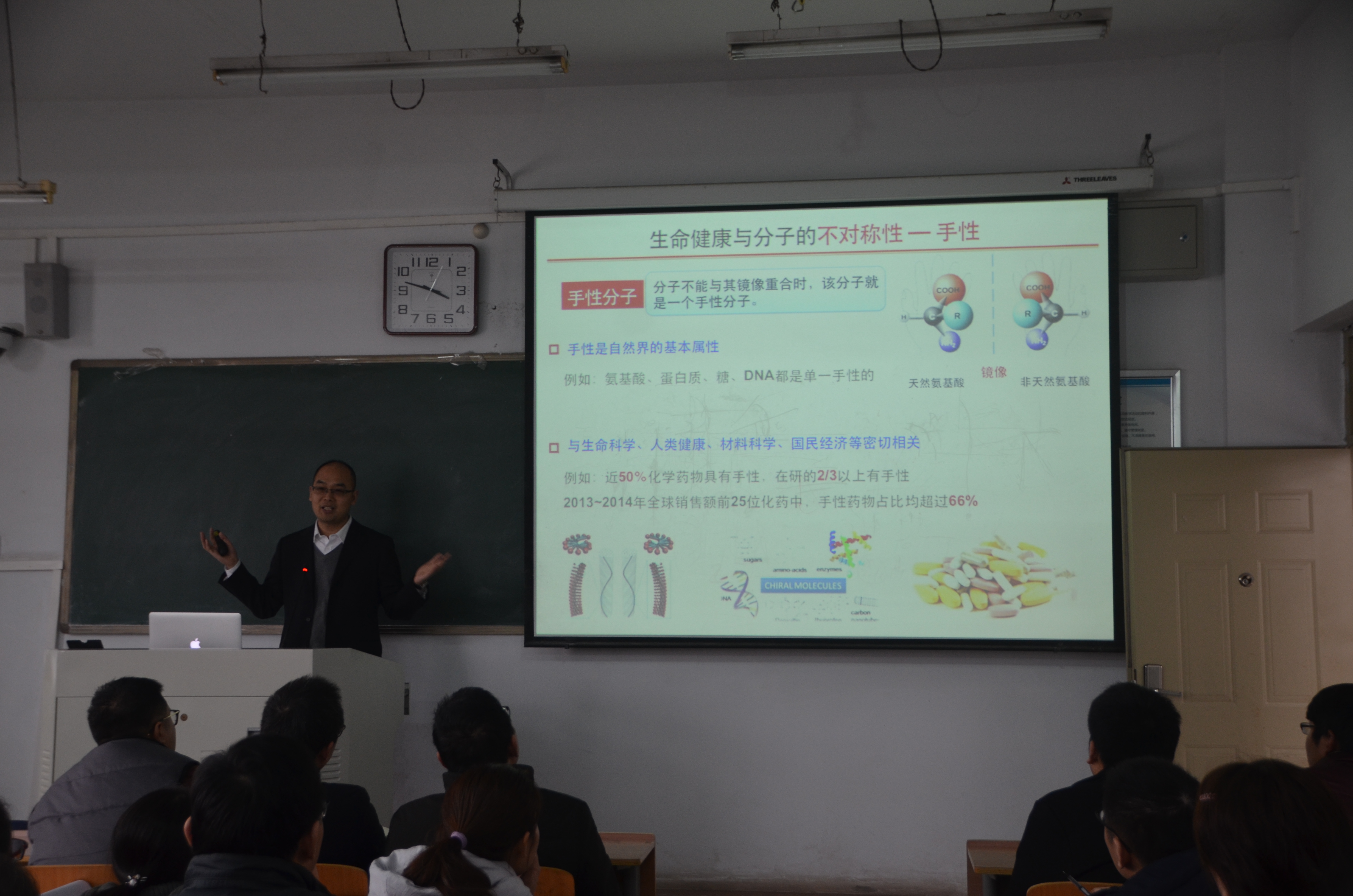 3月1日上午,应永利23411集团邀请,复旦大学博士生导师孙兴文教授在文化路校区1号教学楼411教室作了题为《含氮手性化合物的不对称合成研究》学术报告。报告会由刘澜涛教授主持,化学化工学院部分师生聆听了报告。