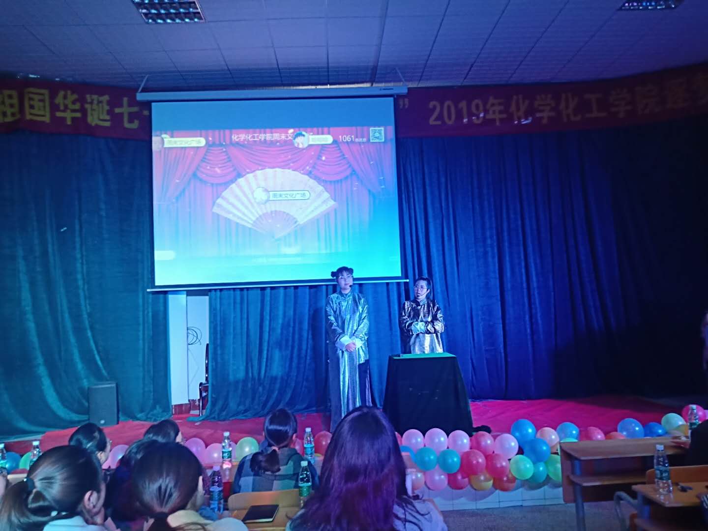 跳跃的音符演奏着青春的活力,动人的舞步展示着青春的风影。晚会在一段热烈的舞蹈中拉开序幕,在主持人饱含激情的开场白后,绘声绘色,掌声雷动的小品瞬间引人入胜,完美地开启了晚会的第一篇:《忆;往昔》。接着,化学化工学院优秀学子马震以一首等你下课,带我们品味细碎的时光,等你下课,余生陪你看尽这四季的繁华。激动人心的抽奖环节更是将现场的氛围点燃到极致!