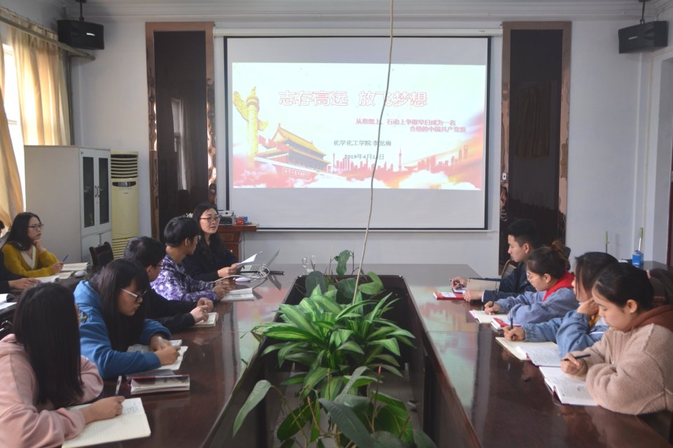 为了不断学习、实践、改造,树立正确的入党动机,4月13日,化学化工学院于睢阳校区7号楼会议室进行“志存高远,放飞梦想—端正入党动机,争取早日加入中国共产党”中级入党积极分子培训。学院全体中级入党积极分子参加,团总支书记李龙梅主讲。