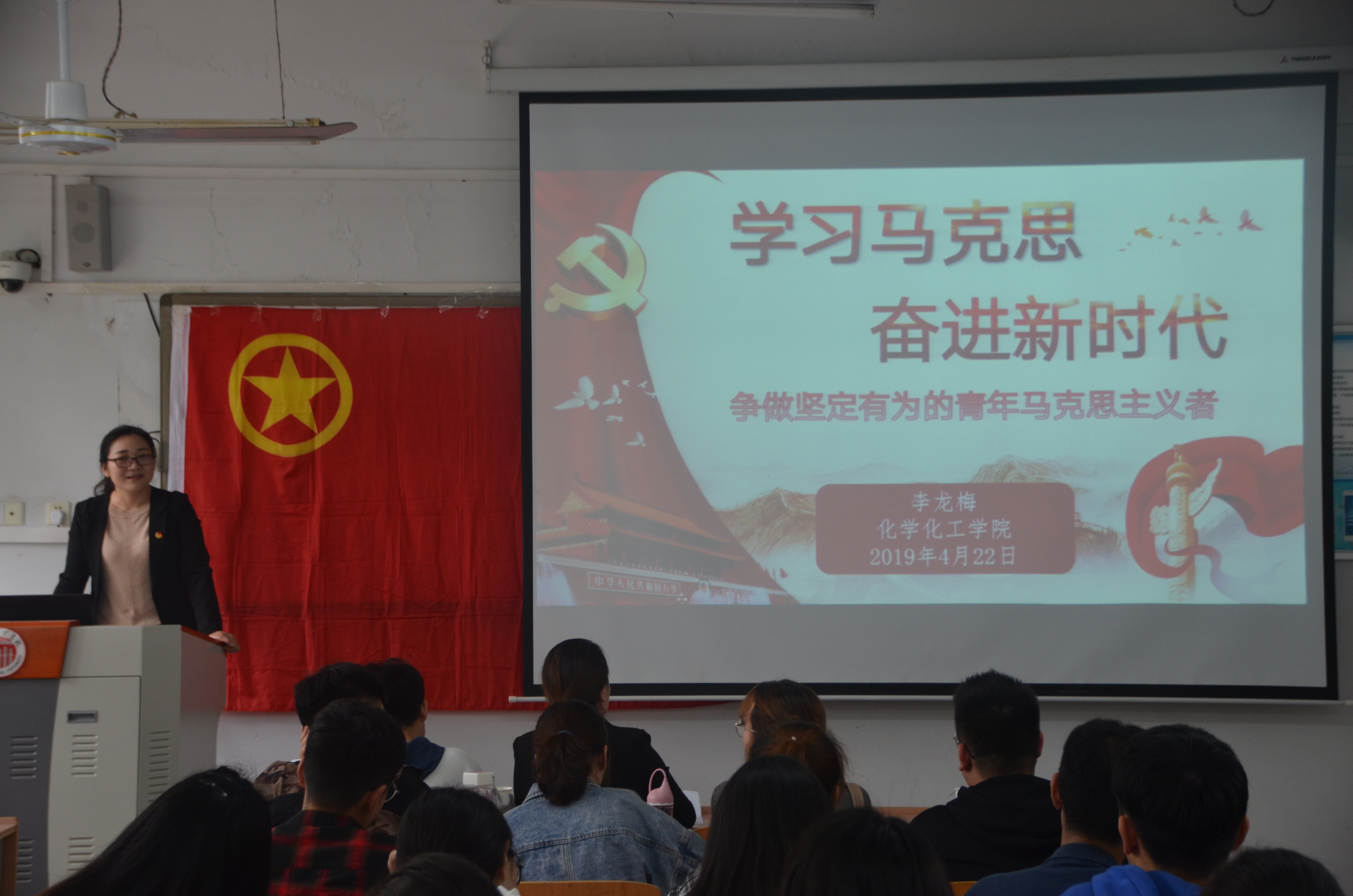 为了深入实施青年马克思主义者培养工程,努力建设一支思想纯洁、政治忠诚、能打硬仗的青年政治骨干,4月23日中午,化学化工学院于睢阳校区1号楼409教室举行了第三讲“学习马克思,奋进新时代,争做坚定有为的青年马克思主义者”。第一期青马培训班全体学员参加,团总支书记李龙梅主讲。