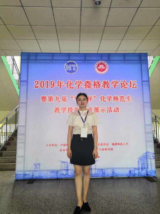 2019年5月17-20日,由中国教育技术协会微格教学专业委员会、福建师范大学主办的“2019年化学微格教学论坛暨第九届‘华文杯’化学师范生教学技能展示活动”顺利举行。永利23411集团15级化学专业曾文艳同学在王晓娟老师带队下参赛。比赛中,经过教学设计、说课、模拟授课和现场答辩几个环节的激烈角逐,曾文艳同学凭借扎实的专业功底和娴熟的授课技巧取得了教学技能二等奖和教学设计三等奖各一项,指导教师荣获相应等级证书。