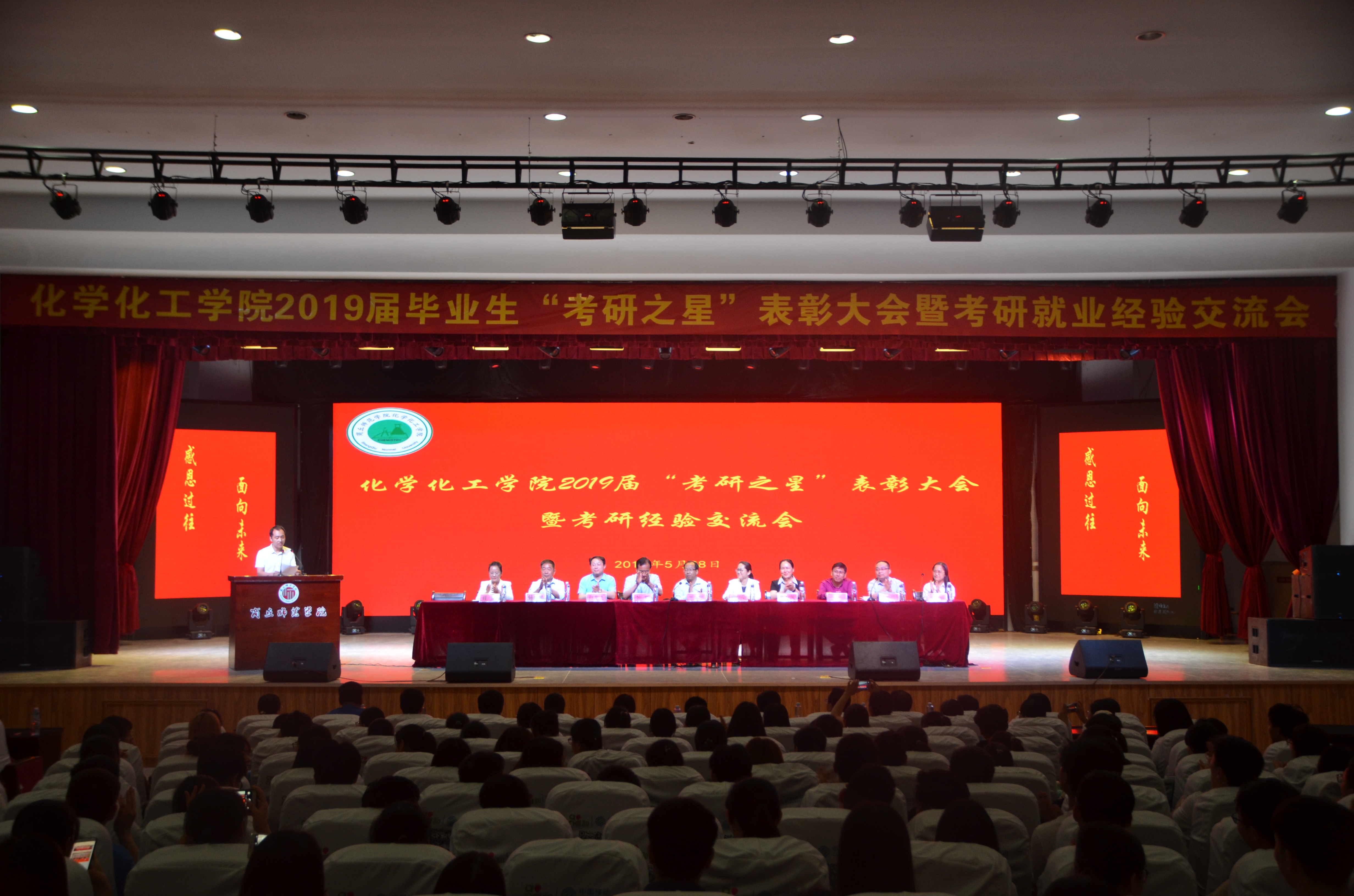5月28日,化学化工学院于睢阳校区大礼堂举办了2019届毕业生“考研之星”表彰大会暨考研就业经验交流会。我校副校长郭文佳、宣传部部长李辉、校团委书记杨莹莹、教务处副处长赵龙飞、招生与就业处副处长杨春风应邀出席活动,化学化工学院党政领导班子、系主任、副主任、教学办公室主任、院办公室主任、辅导员、2015级考研之星代表及全体16、17、18级同学参加活动。会议由副院长孟团结主持。