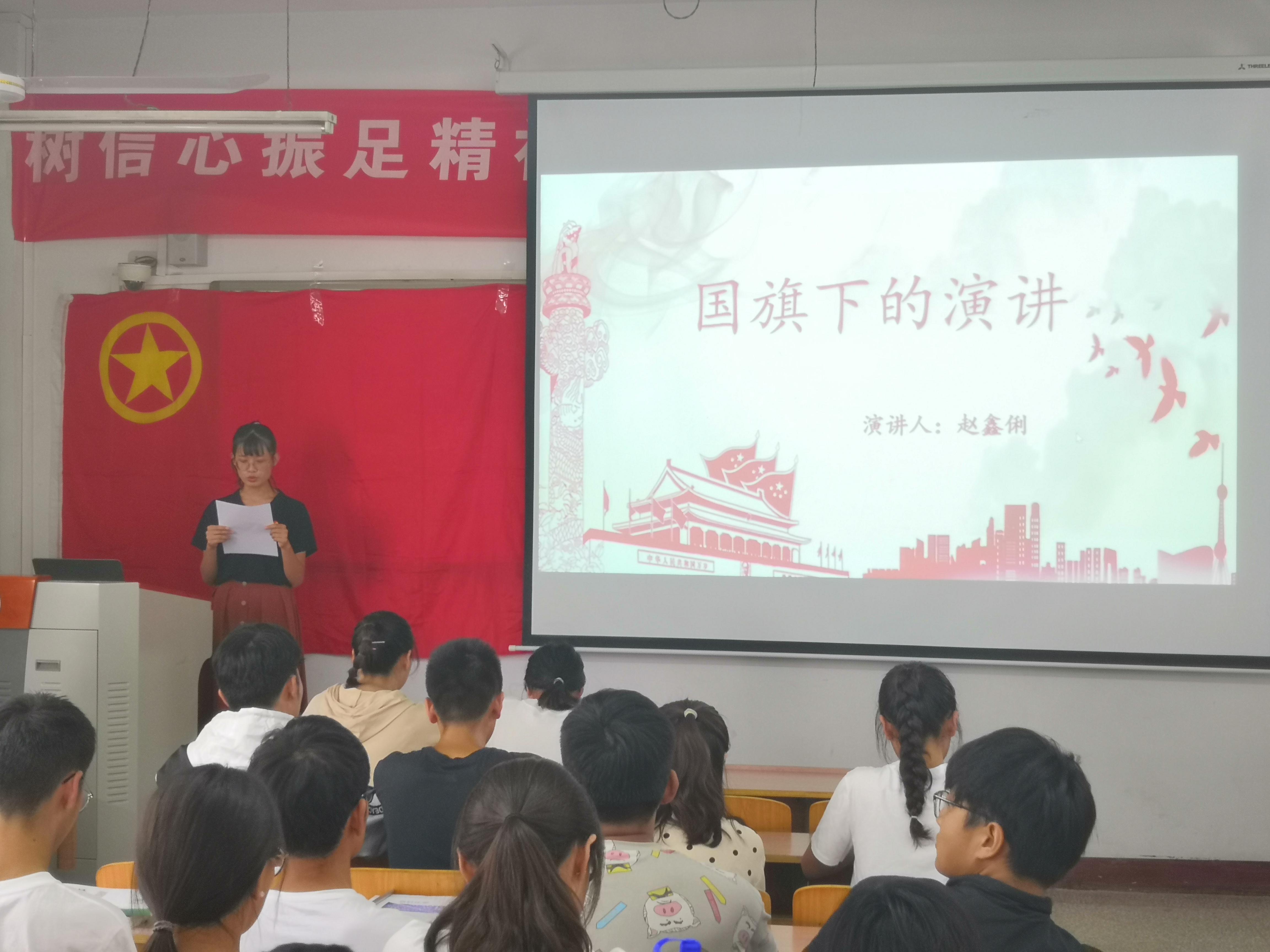 为深入学习宣传习近平新时代中国特色社会主义思想和党的十九大精神,隆重庆祝中华人民共和国成立70周年、纪念五四运动100周年,激发学院学生为实现伟大的“中国梦”而努力奋斗,9月25日中午,化学化工学院于睢阳校区1号楼410教室举办“我与祖国共奋进-国旗下的演讲”主题团日活动。