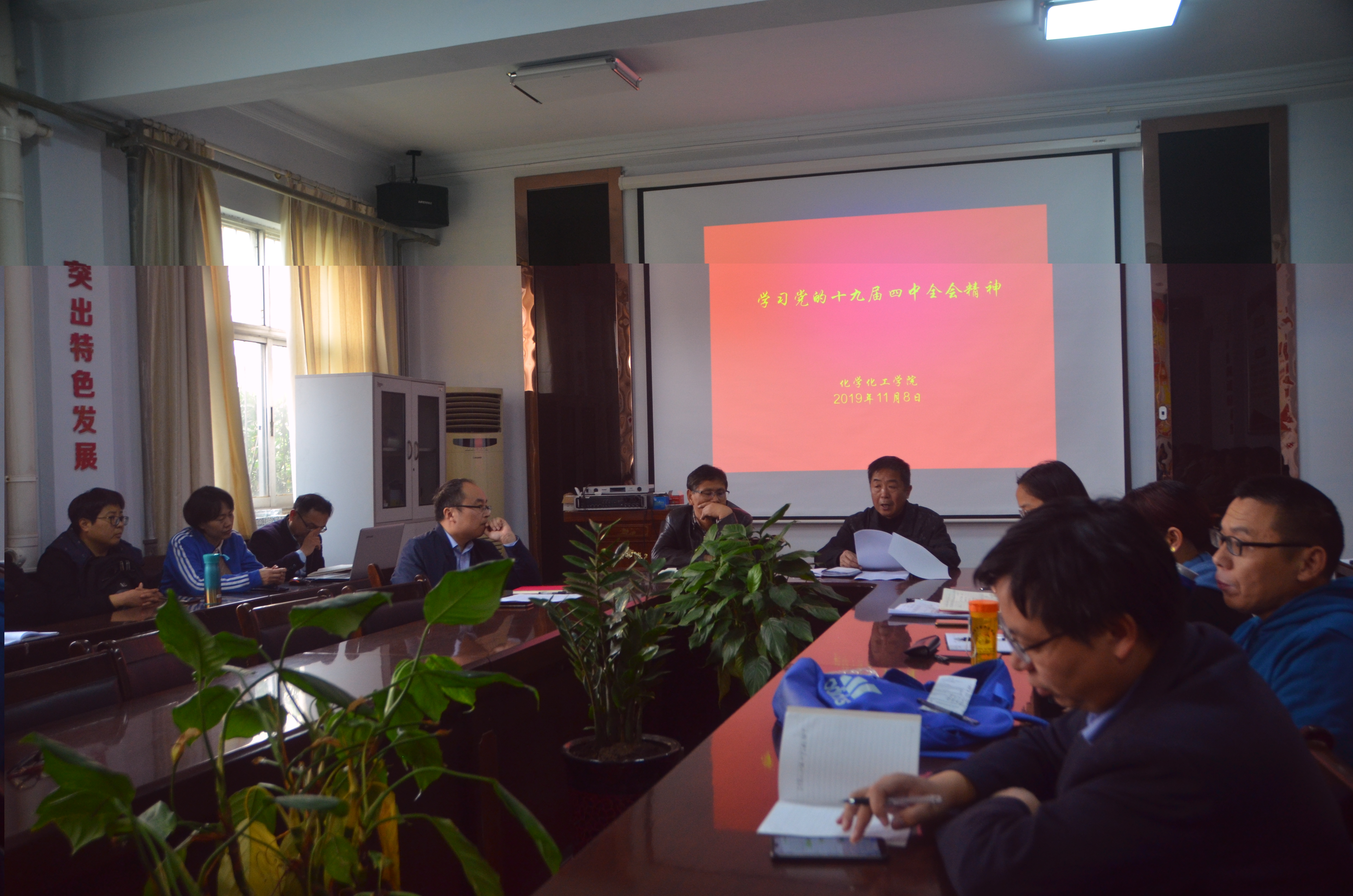为深入学习宣传党的十九届四中全会精神,扎实推进“不忘初心、牢记使命”主题教育的深入开展。11月8日下午,化学化工学院于睢阳校区7号楼会议室召开学习党的十九届四中全会精神会议。全体教职工参加,大会由党总支书记韩忠民主持。