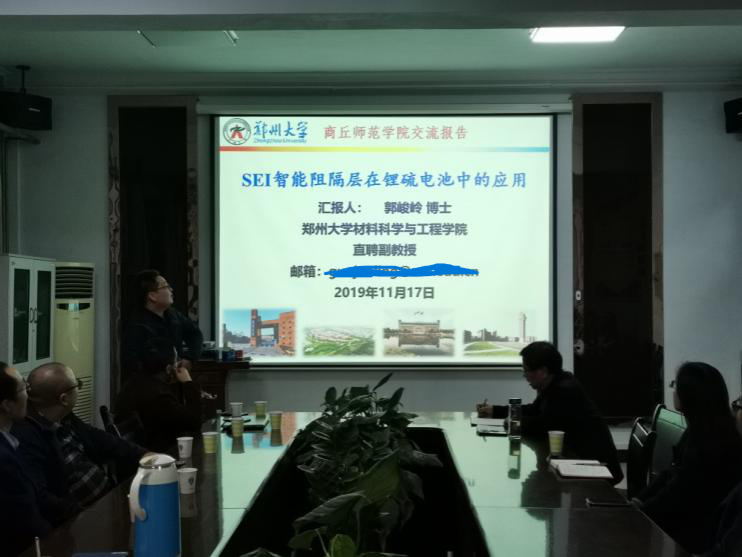 应化学化工学院的邀请,11月17日,郑州大学青年拔尖人才王烨、卢思宇、薛超、郭峻岭四位博士在文化路校区化学化工学院会议室分别做了题为“Printed electronic devices with inorganic materials”、“碳化聚合物点的可控制备及性质研究”、“基于载流子空间分离策略的光催化体系构建与光解水产氢性能研究以及“SEI智能阻隔层在锂硫电池中的应用”的学术报告,报告会由瞿鹏院长主持,化学化工学院部分老师、研究生和本科生聆听了报告。