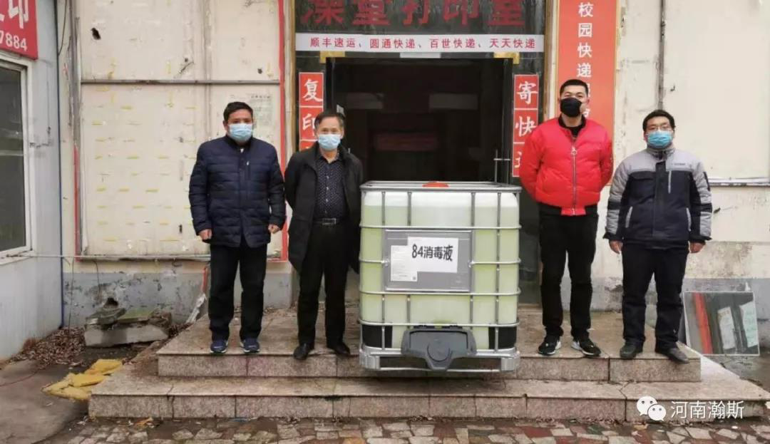 当前,全国上下众志成城全力抗击新型冠状病毒。为助力学校新型冠状病毒疫情防控工作,2月6日,我校化学化工学院校企合作单位河南瀚斯作物保护有限公司向永利23411集团捐赠了1吨84消毒液,大力支持学校的疫情防控工作。永利23411集团后勤处主任邱友良、河南瀚斯作物保护有限公司行政部副主任韩永鹏、安环部经理陈栋梁共同参加了捐赠仪式。