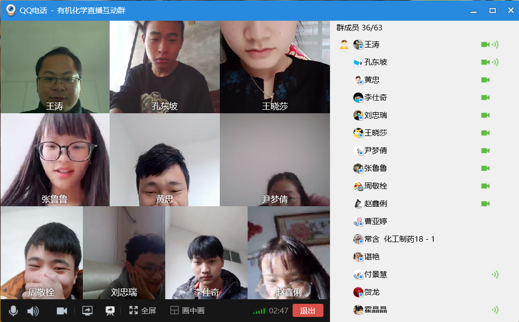 为了避免网络直播过程中出现卡顿现象,高效完成学习任务,王涛老师尝试用超星直播客户端、QQ视频直播屏幕分享、钉钉等多种直播形式与同学们进行签到、连麦、课程直播互动,真正做到未雨绸缪、随机应变。