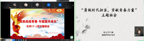 在学习中,青年战“疫”先锋志愿者化学17-1班的卫晓慧同学、在当地参加志愿服务活动的化工17-1班刘峰及任塘鹏三名同学分别分享了自己的志愿服务故事,将在志愿服务活动中的所见所闻,所感所悟和同学们做了交流。