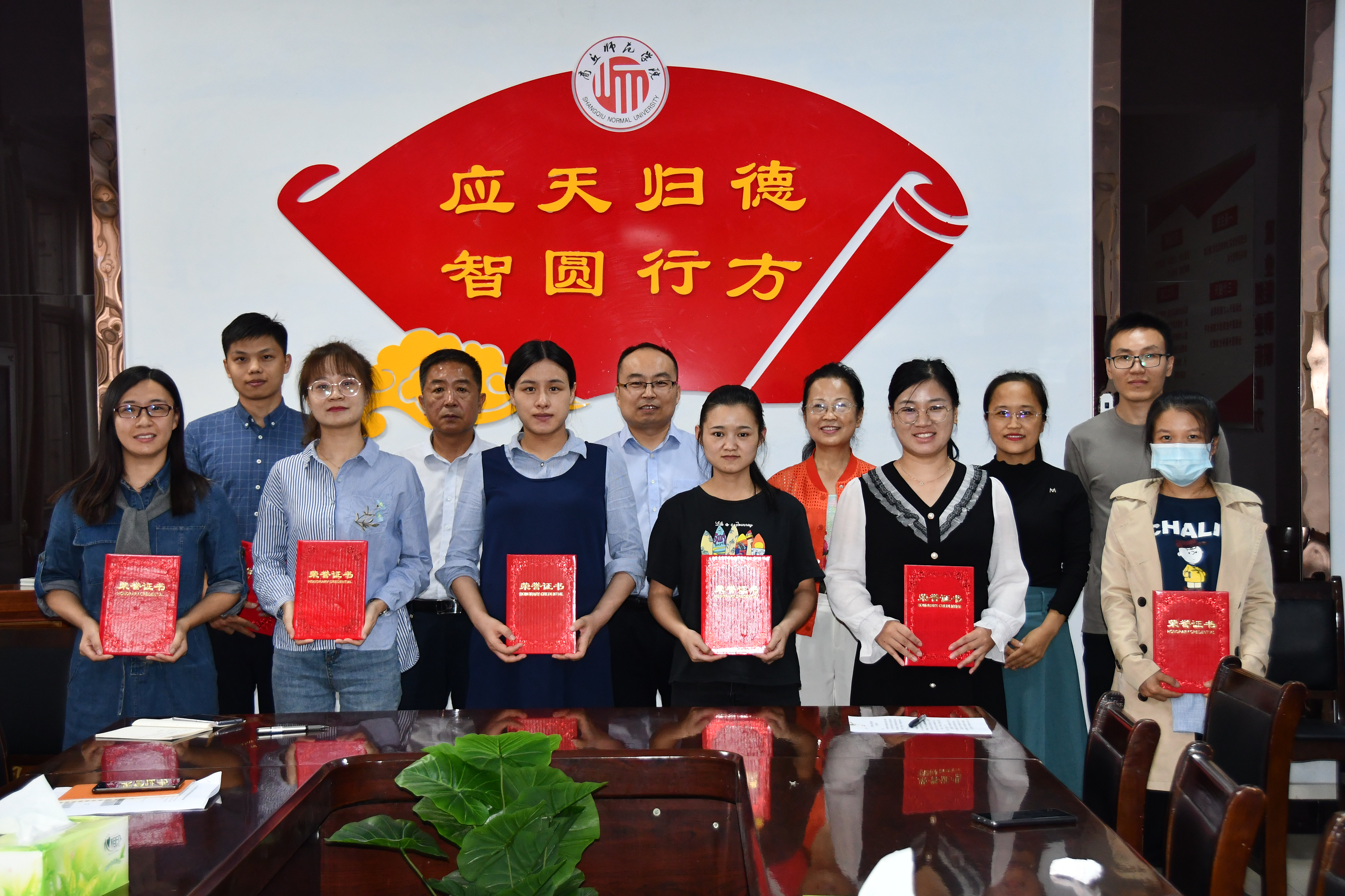 大会首先由孟团结就我院青年教师导师制培养工作执行情况进行汇报,孟团结结合学院实际情况从青年教师导师制培养工作的重要性和必要性、上学年度导师制培养工作开展情况、学年综合考核方式和结果等三个方面进行了总结汇报,接着宣布了2020-2021学年青年教师导师制结对名单,对本学年度青年教师导师制工作进行安排部署。最后党总支书记韩忠民、副书记刘瑛、副院长周艳丽为获得2019-2020学年考核优秀的9位青教师颁发证书和奖品。