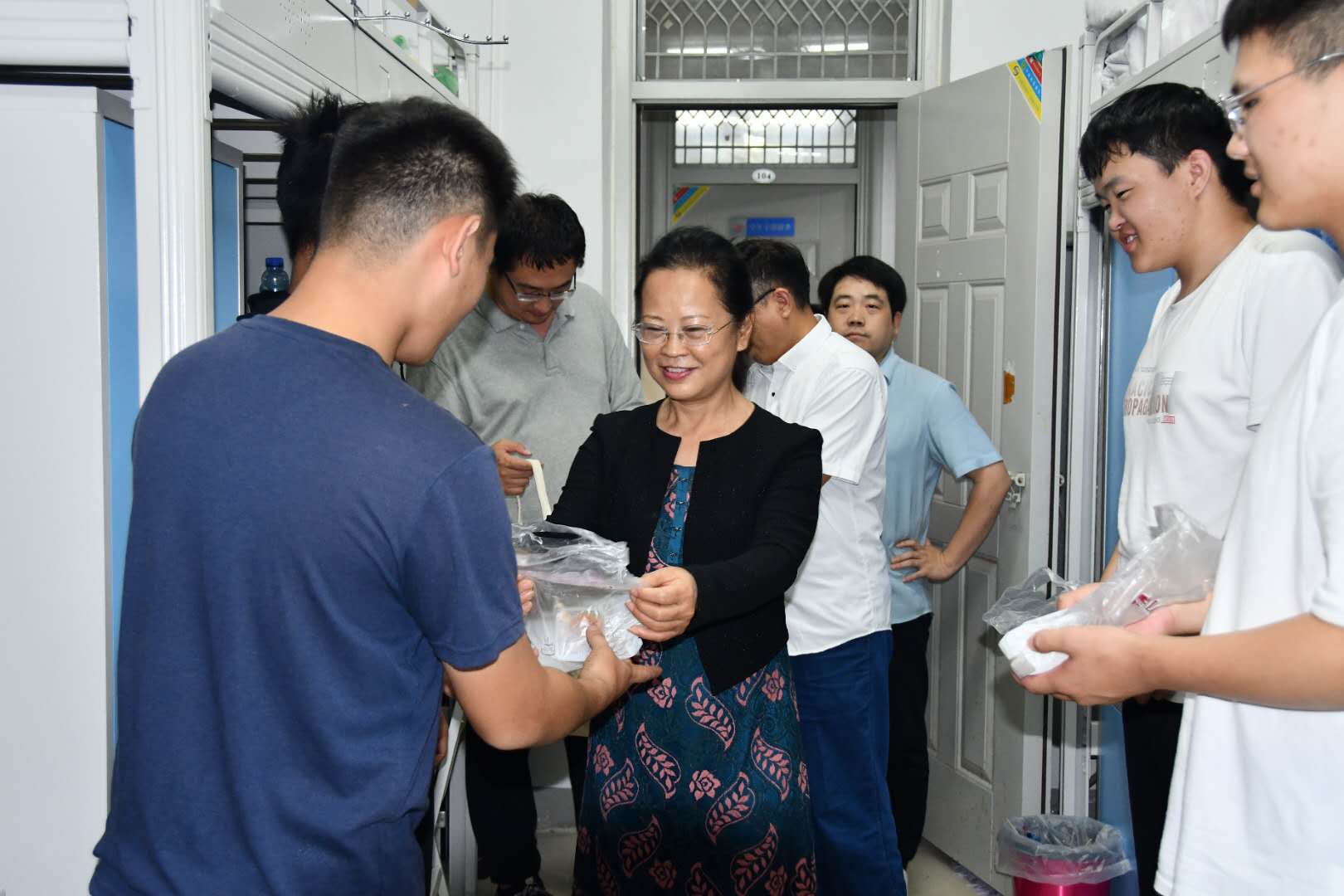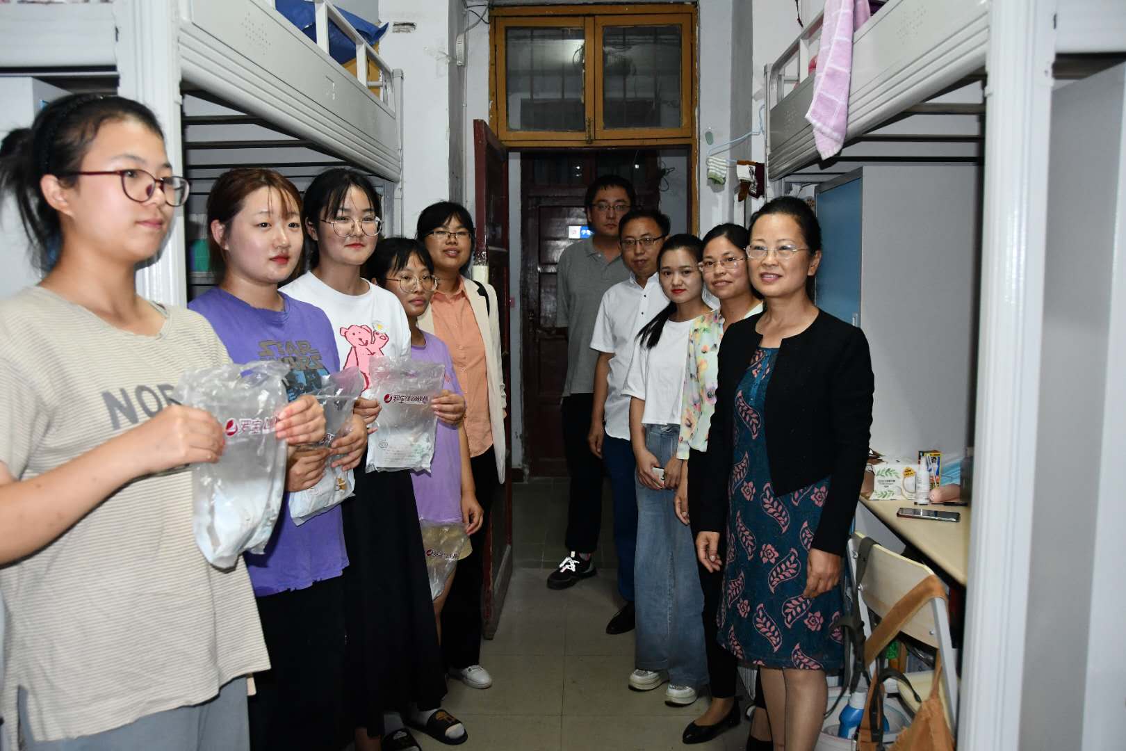 当中秋邂逅国庆,名为家国同庆,欢聚的门化成皎洁的明月带远方的人回家,让长挂星空的思念落地,点亮万家灯火,温暖中华大地。为了让新生感受到家一般的温暖,2020年9月30日下午,化学化工学院党总支副书记刘瑛带领辅导员、2020级新生班主任到宿舍看望慰问新生,并为新生发放月饼,送上国庆、中秋双节祝福。