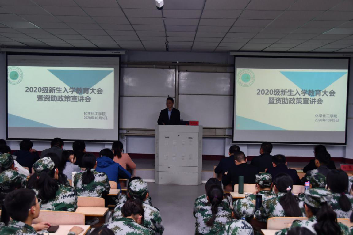 为帮助新生尽快适应大学生活,树立远大的目标,2020年10月5日,化学化工学院于1号楼307教室举办2020级新生入学教育大会暨资助政策宣讲会,本次活动由党总支副书记刘瑛主持,化学化工学院党总支书记韩忠民、副院长孟团结、周艳丽、办公室主任姬红彬、教学办公室主任胡春华、教师代表李高伟、各年级辅导员、20级各班班主任、20级班级助理以及20级全体学生参加会议。