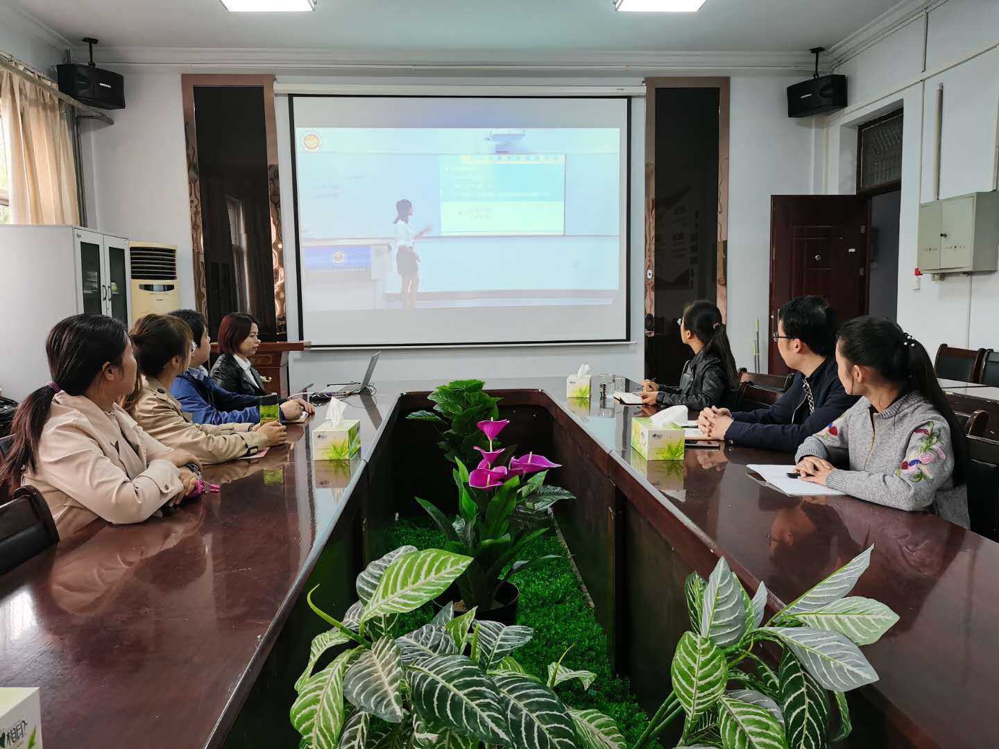 随后,老师们针对教学视频从教学内容、教学方法、教学手段、教学语言、妆容仪表等方面进行了点评,提出了许多中肯建议。周艳丽老师评价说教师的教态自然,语言流利,表达精准到位。刘新明老师评价说教学内容安排适当,教学手段还可以再进一步创新,比如增加些模型和动画帮助学生理解,课堂效果会更好。韦秀华老师评价说教学语言很流畅,如果在语调上能再多些变化则会更吸引人。青年教师也积极地发表了看法,张南老师评价说教师松弛自然的教态、自信富有热情的教学态度以及对课堂的把控能力值得我们青年教师学习。